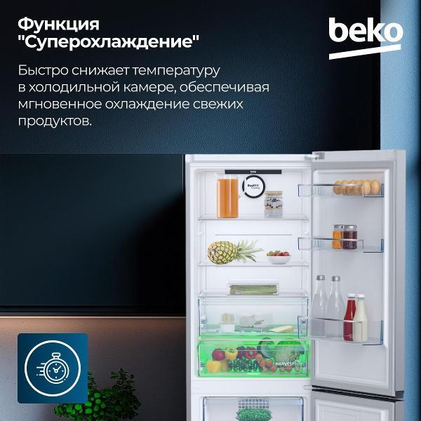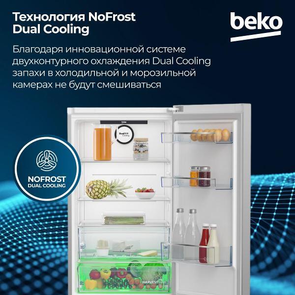 Холодильник Beko B3RCNK362HS с нижней морозильной камерой оборудован стандартным компрессором, обеспечивающим тихую и энергоэффективную работу. Уровень шума не превышает 40 дБ, годовой расход электричества — 326 кВт*ч.