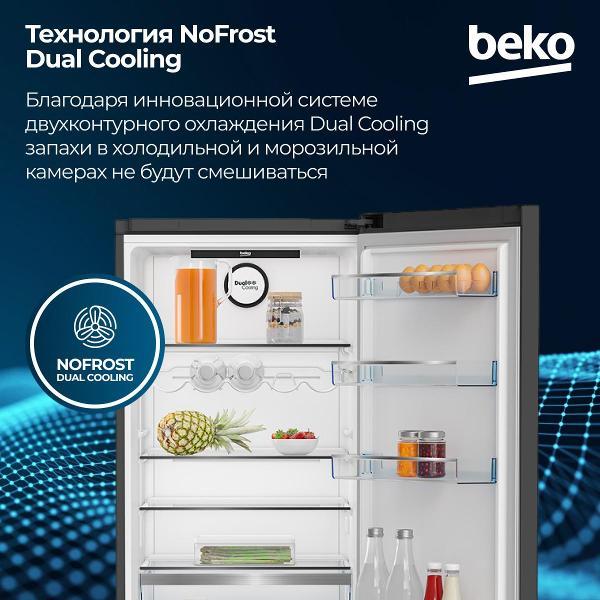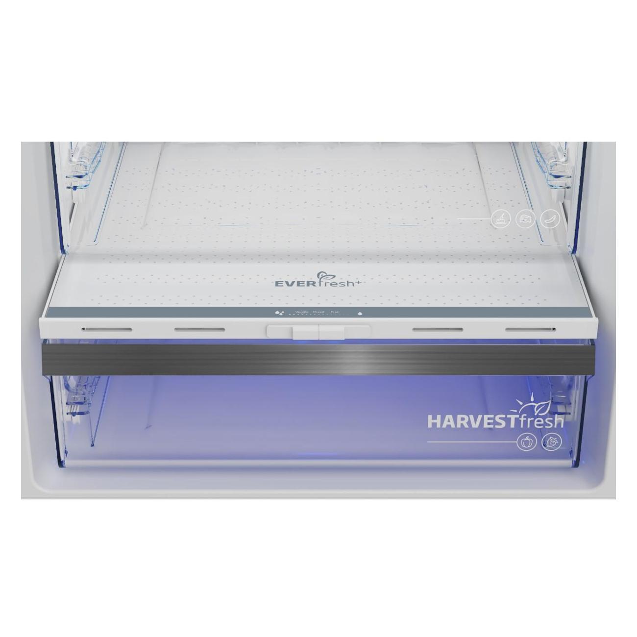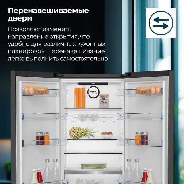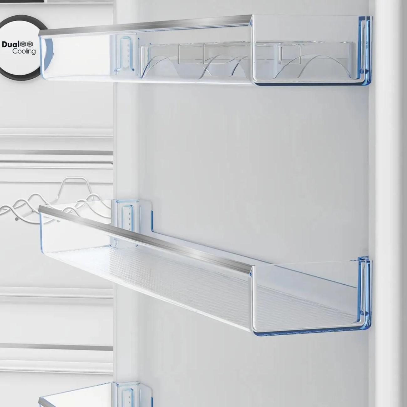 Холодильник с нижней морозильной камерой Beko B5RCNK403ZXBR оборудован электронной панелью управления с небольшим дисплеем, которые размещены на дверце снаружи. Максимальный уровень шума устройства в процессе работы составляет 38 дБ. Доступна работа в режиме энергосбережения. Объем холодильного отделения равен 257 л, встроена зона свежести. Полки сделаны из прочного закаленного стекла и пластика.