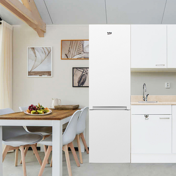 Двухкамерный холодильник Beko CSKR5335M20W — вместительная модель размером 201 х 54 х 60 см общим объемом 335 л. Прибор экономичен: в год потребляет 294 кВтч, что соответствует классу А+. При отключении электроэнергии холод сохраняется в течение 18 часов.