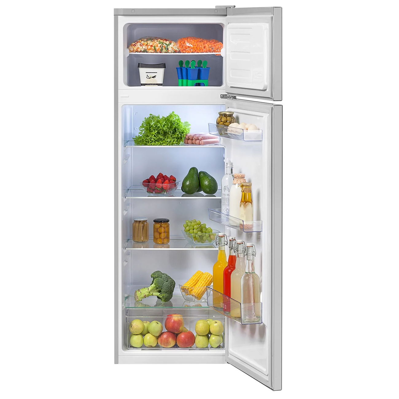 Холодильник среднего размера, на мой взгляд, оптимального для семьи из двух человек. В нашем случае большинство стандартных размеров по ширине не подходило, надо было уместить в нишу. Этот чуть уже стандартных, моделей такого размера немного. Удобно пользоваться морозилкой - не нужно никуда наклоняться. Работает тихо, двери закрываются плотно, хорошие прочные полки из закалённого стекла, яркая подсветка. Ручки холодильника не выпирают за пределы корпуса. Двери, при необходимости, можно самим перевесить на другую сторону.