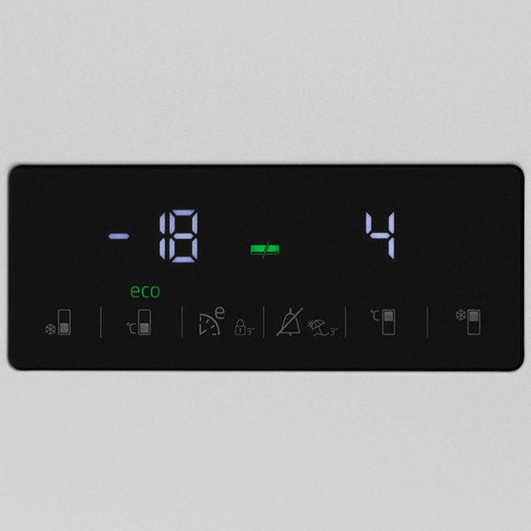 Электронная панель управления позволяет контролировать температуру в обоих отделения, менять параметры и включать различные функции за считанные секунды. Если пользователь забыл открытой дверцу, устройство напомнит ему об этом визуальными и звуковыми сигналами.
