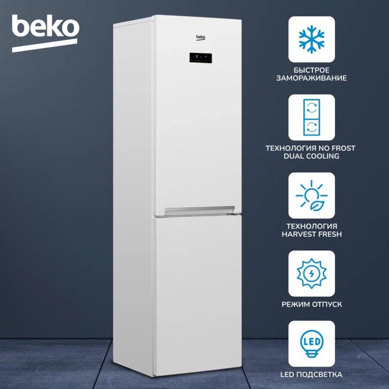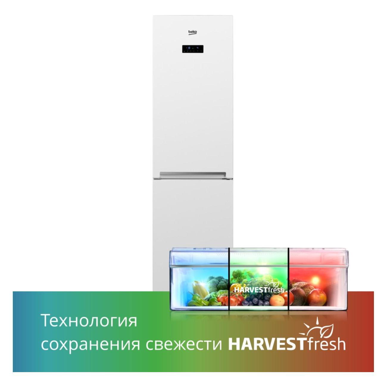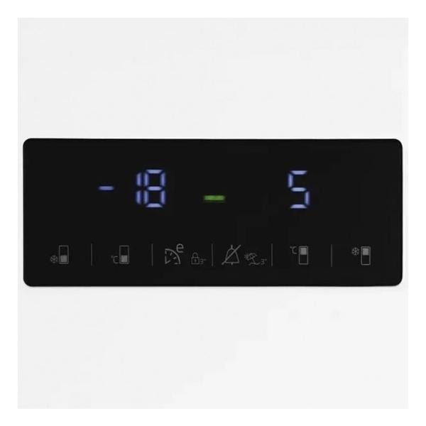Холодильник с нижней морозильной камерой Beko RCNK335E20VW в корпусе белого цвета снабжен сенсорной панелью управления. Она располагается на верхней двери с внешней стороны. Присутствует блокировка от нежелательного управления, что особенно удобно для семей с детьми. На дисплее отображается информация о включении, режиме работы и температуре в каждом отсеке.
