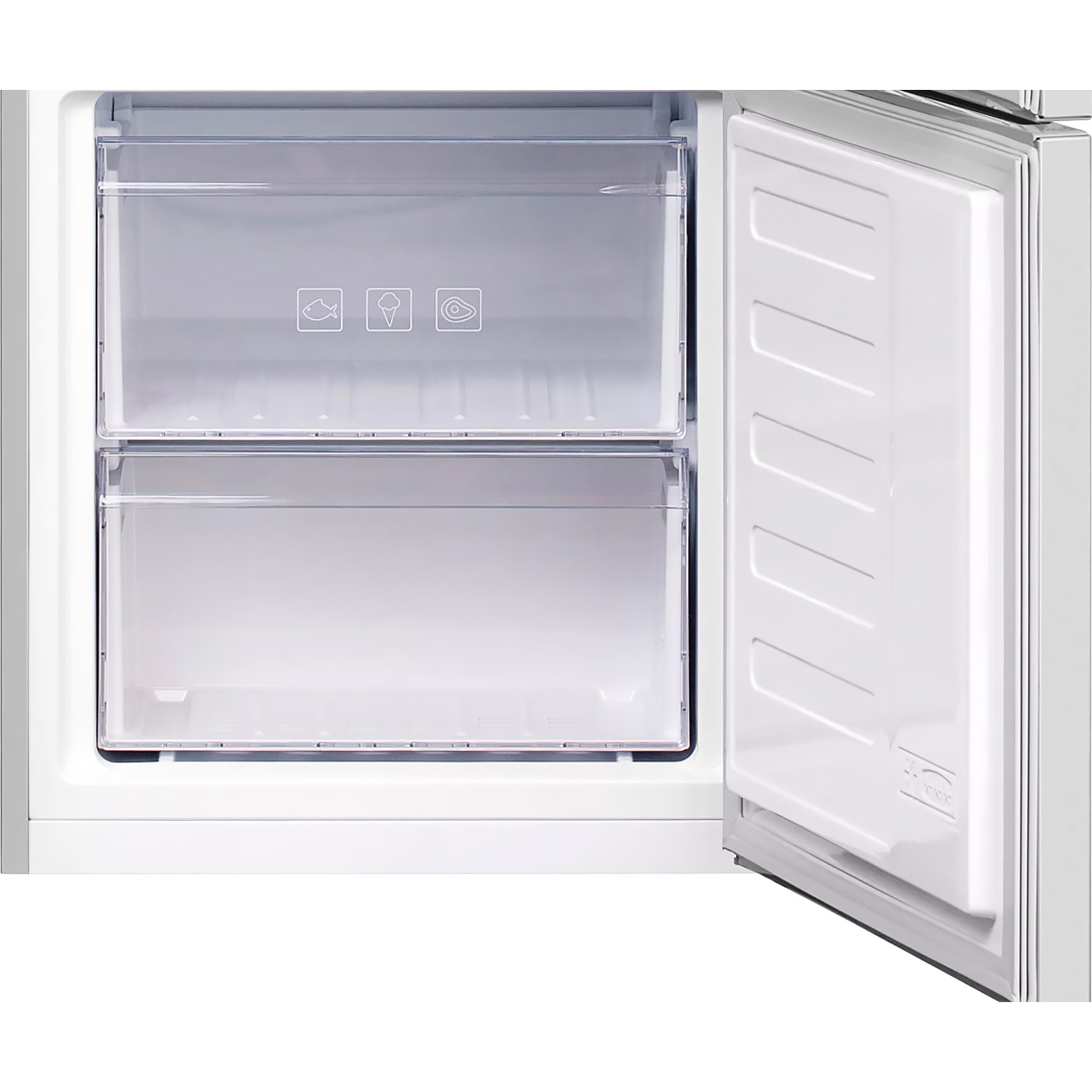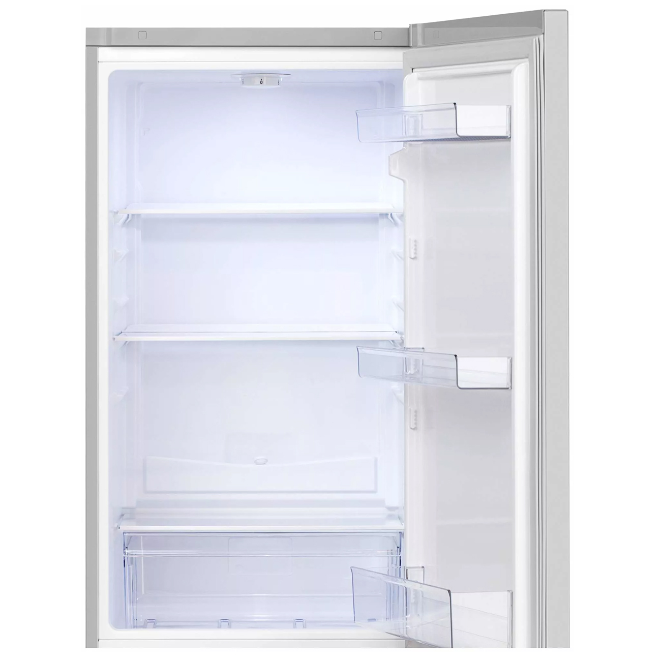 Уровень шума холодильника в процессе работы равен 40 дБ. В комплекте с устройством идет формочка для льда и подставка для яиц. Объем холодильной камеры составляет 175 л, основная часть полок выполнена из стекла. Ящики сделаны из прочного пластика. Снизу установлен вместительный морозильный отсек на 65 л, производительность которого достигает 4 кг/сутки. Металлические двери оснащены эмалированным покрытием, которое легко поддается чистке.