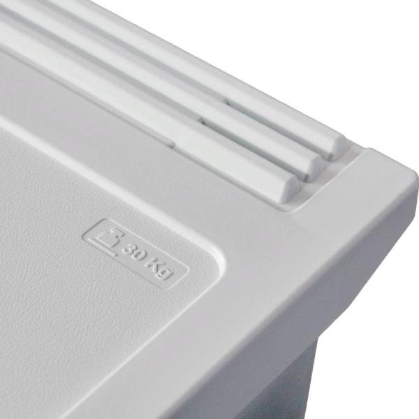 В холодильном отделе объемом 188 л размещены три полки, из которых две регулируются по высоте, и два ящика для хранения овощей. Морозильная камера размещает одну полку. Объем равен 47 л. Модель обеспечивает сохранность продуктов при отключении питания в течение 10 ч. Встроено LED-освещение. В год потребление энергии достигает 179 кВт*ч. Уровень шума — 42 дБ. Цвет — белый. Вес — 42 кг. Габариты — 122х58х62 см.