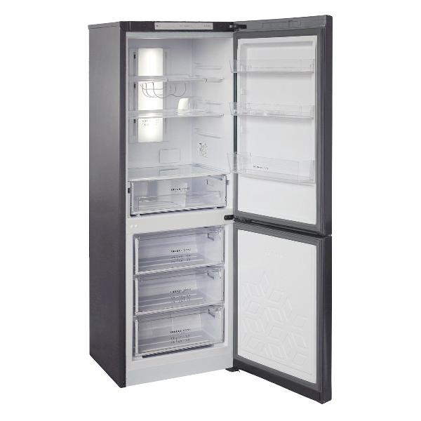 Холодильное отделение объемом 210 л со встроенной LED-подсветкой оснащено зоной свежести на 28 л с регулируемой влажностью. Для размещения продуктов задействуются одна подвесная, три основные и три боковые полки из закаленного стекла и пластика, выдвижной бокс, держатель для бутылок, подставка для яиц. В морозильнике емкостью 100 л расположены три прозрачных ящика.