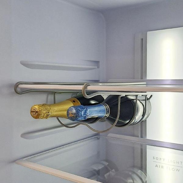 В случае непредвиденного отключения электричества модель будет функционировать в течение 17 часов. Класс энергопотребления — A. Уровень шума не превышает 43 дБ, поэтому устройство можно установить в квартире-студии. Габариты: 175x60x62,5 см. Система No Frost упрощает использование холодильника.