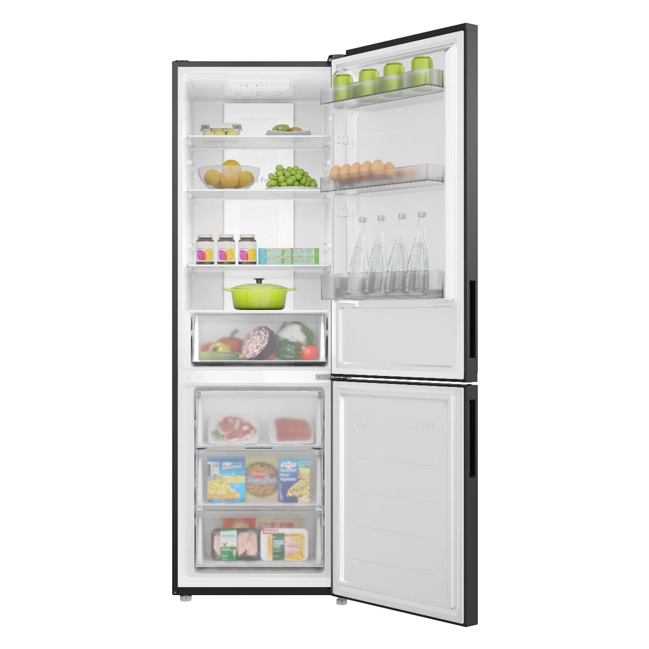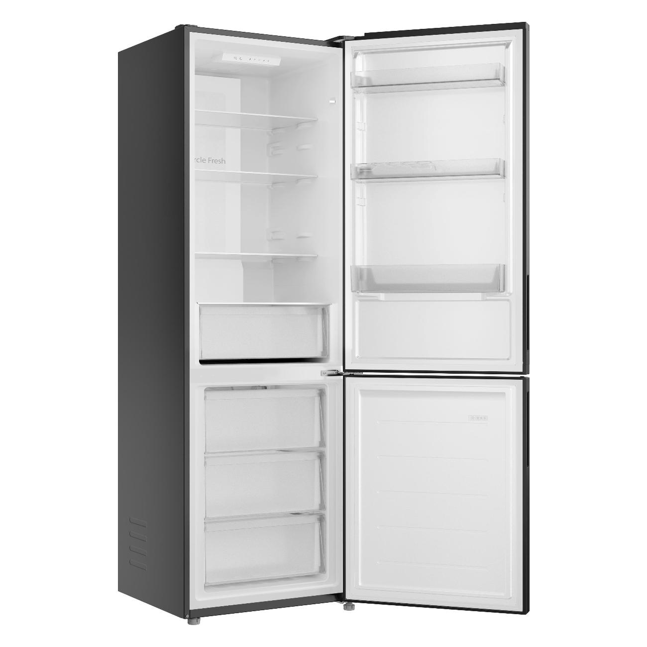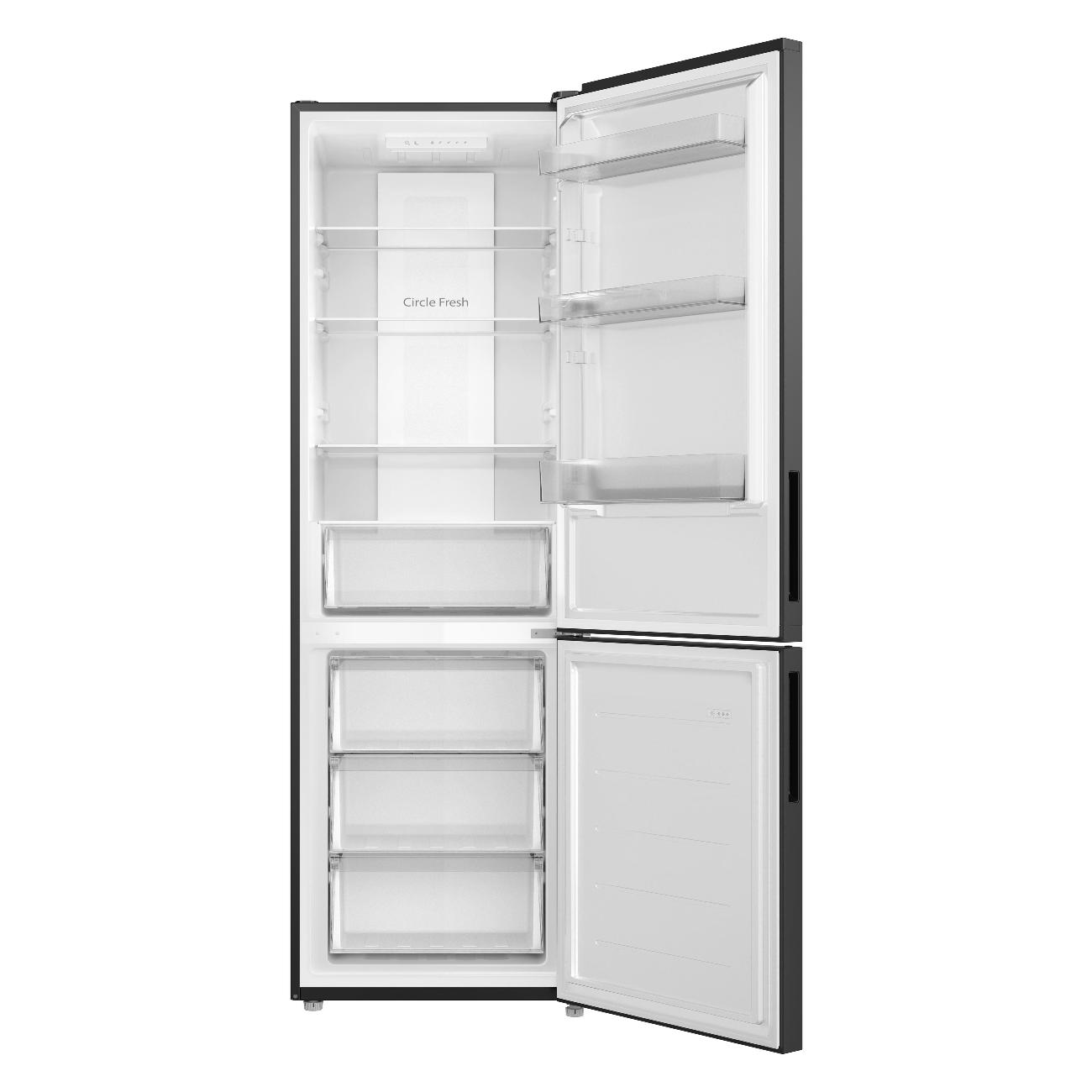 Холодильник Candy CFN6185B, черный, общим объемом 298 л — двухкамерная модель с нижним расположением морозильного отделения.