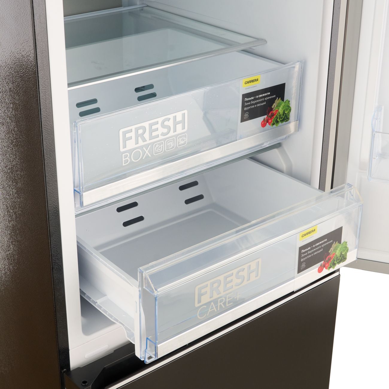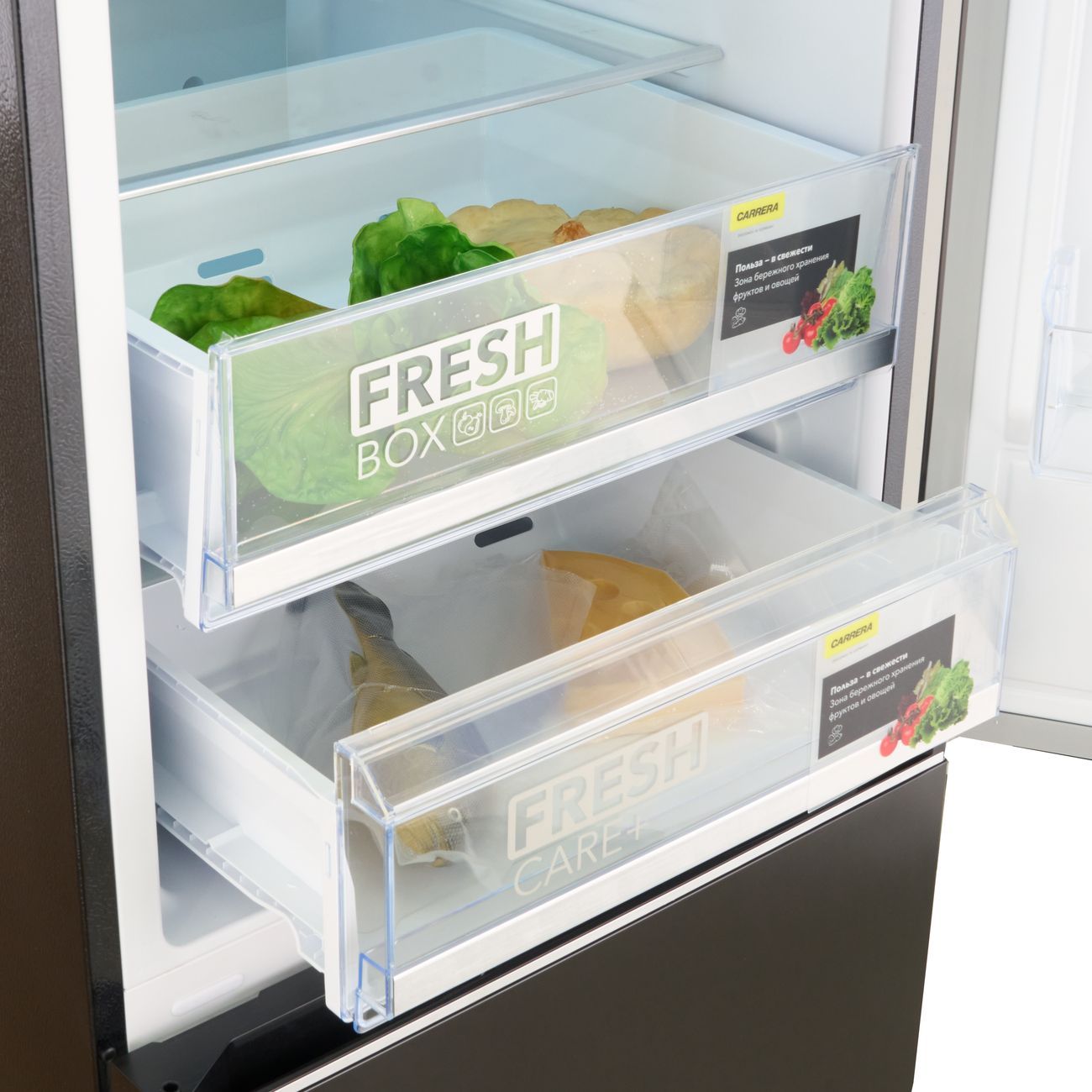 Вместительный и стильный холодильник. Есть зона свежести для фруктов и овощей. Мне нравится режим быстрой заморозки - продукты сохраняют полезные свойства, а заморозка происходит очень быстро. Измерила термометром - температура в морозилке -32 C. Еще есть два ящика, предназначенных для сохранения свежести овощей, фруктов, зелени, а также мяса и рыбы благодаря повышенной влажности. Нижний ящик можно настроить дополнительно - есть 3 режима на выбор, в зависимости от продуктов. Мне все понравилось. А, еще и гарантия 3 года.