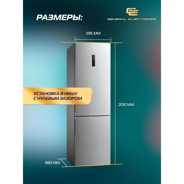 Холодильник General Electronics GE-ID401S, серебристый, обладает общим объемом 386 л (включая 263 л холодильной и 123 л морозильной камер).