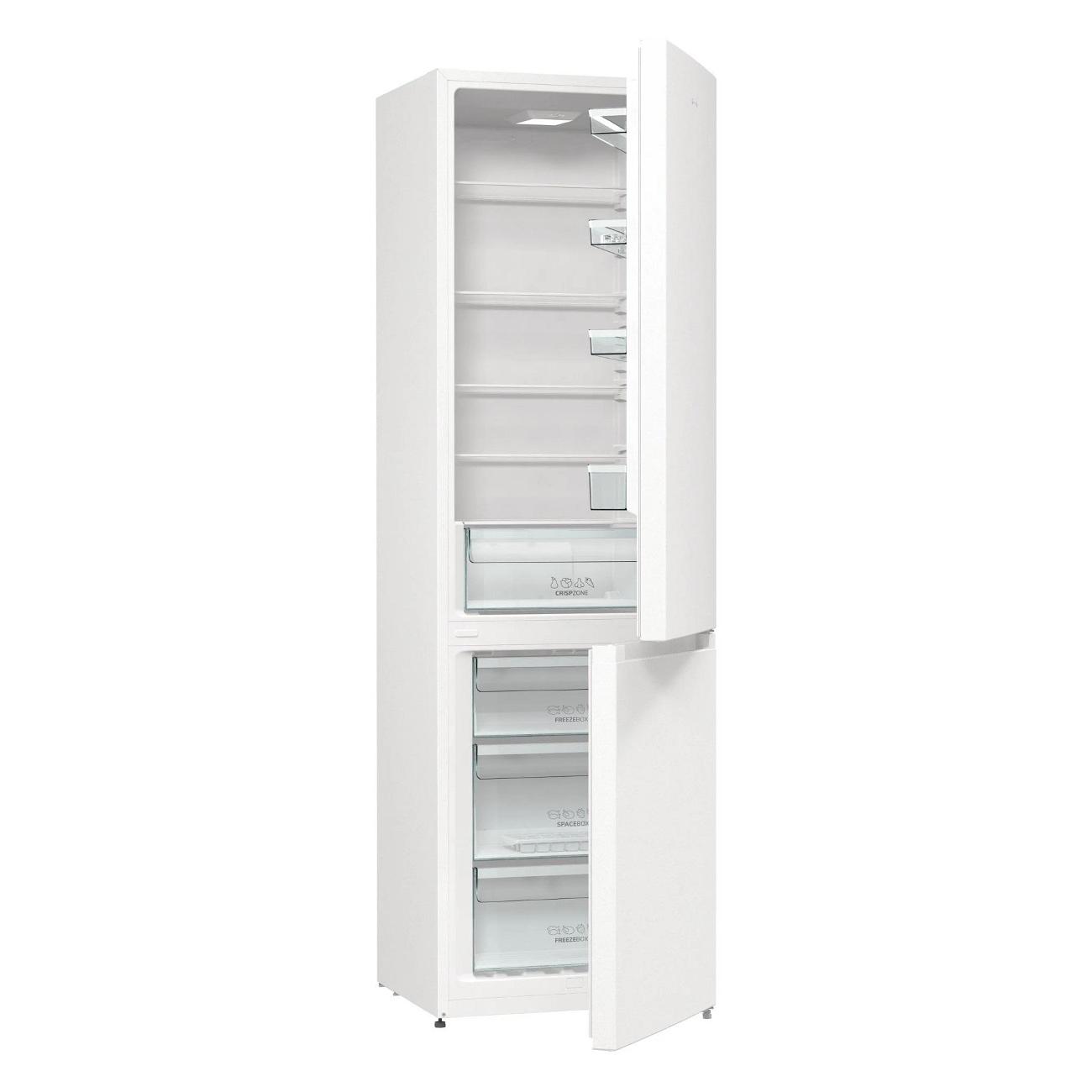 Холодильник Gorenje RK6201EW4 в корпусе белого цвета — двухкамерный. Модель относится к классу энергопотребления А+. Дверцы холодильника изготовлены из окрашенного металла, их можно перенавешивать. В основании холодильника предусмотрены четыре ножки, две из которых регулируются по высоте. Время автономного сохранения холода после отключения электроэнергии — 23 часа.