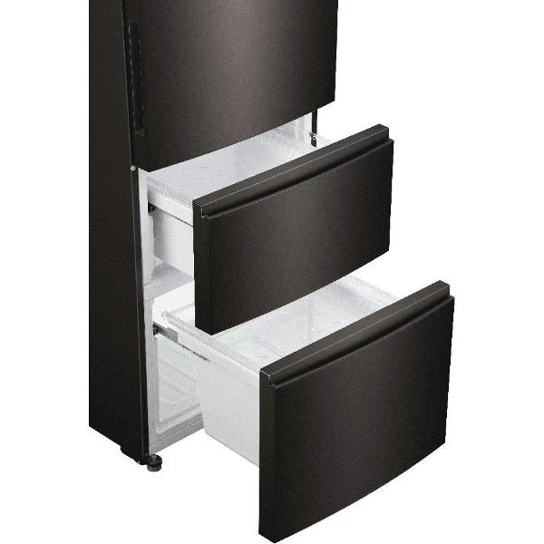Трехкамерный холодильник A4F739CBXGU1, черный — современная модель, которая работает с низким уровнем шума 36 дБ и отличается экономичным энергопотреблением класса А++: в год расходуется 287 кВт*ч. В основе системы охлаждения — инверторный компрессор, используется озонобезопасный хладагент R600A. Общий полезный объем прибора — 389 л. Климатический класс — SN–T.