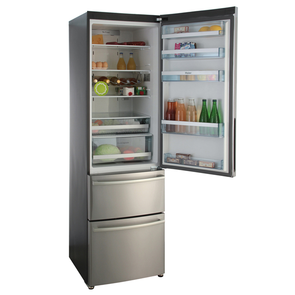 После зимы отказался включаться холодильник на даче. Поэтому решили увезти из дома старый Индезит, и купить в квартиру что то более вместительное и современное. Основными критериями стали - интересный дизайн, нержавейка на фасаде, удобная морозилка, хорошая светодиодная подсветка, и да простит меня родина, не российское производство. Цена, конечно, имела значение тоже, но не была решающим фактором. Опущу подробности выбора, но остановились мы на Haier, т.к. понравились выдвигающиеся ящики морозилки, удачные размеры отделений для фруктов и зоны свежести. Внешний вид с основательными железными ручками так же был очень хорош. Пару недель пребывали в раздумьях, в майские праздники заехали в М-Видео, и О, чудо!
