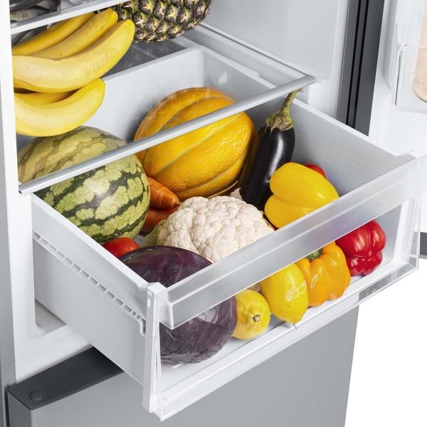 Большой, не шумный и вместительный холодильник. Подошел в нашу современную кухню-столовую. За пару часов вода становится очень холодной. Фрукты, овощи и зелень не портятся. А в объёмной морозилке есть место и для ягод, и для мяса, и для полуфабрикатов. Мне удобно, что морозильное отделение находится снизу, а в холодильном можно менять положение полок или снимать их, чтобы разместить высокие кастрюли. Как главная хозяйка в доме, я довольна.