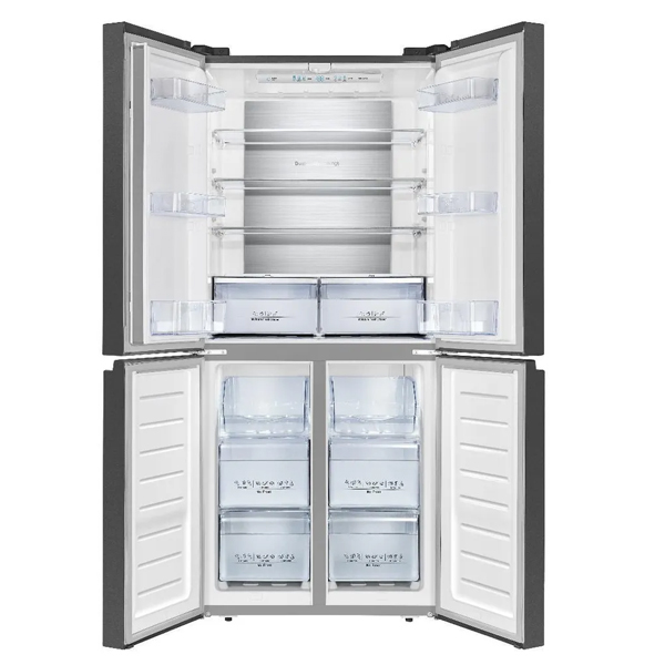 Многодверный холодильник Hisense RQ563N4GB1 черного цвета работает на базе технологии Multi Air Flow, которая отвечает за равномерное охлаждение по всему пространству камер и циркуляцию воздуха через специальные вентиляционные отверстия. Обе камеры оснащены системой Total No Frost, предотвращающей появление наледи.