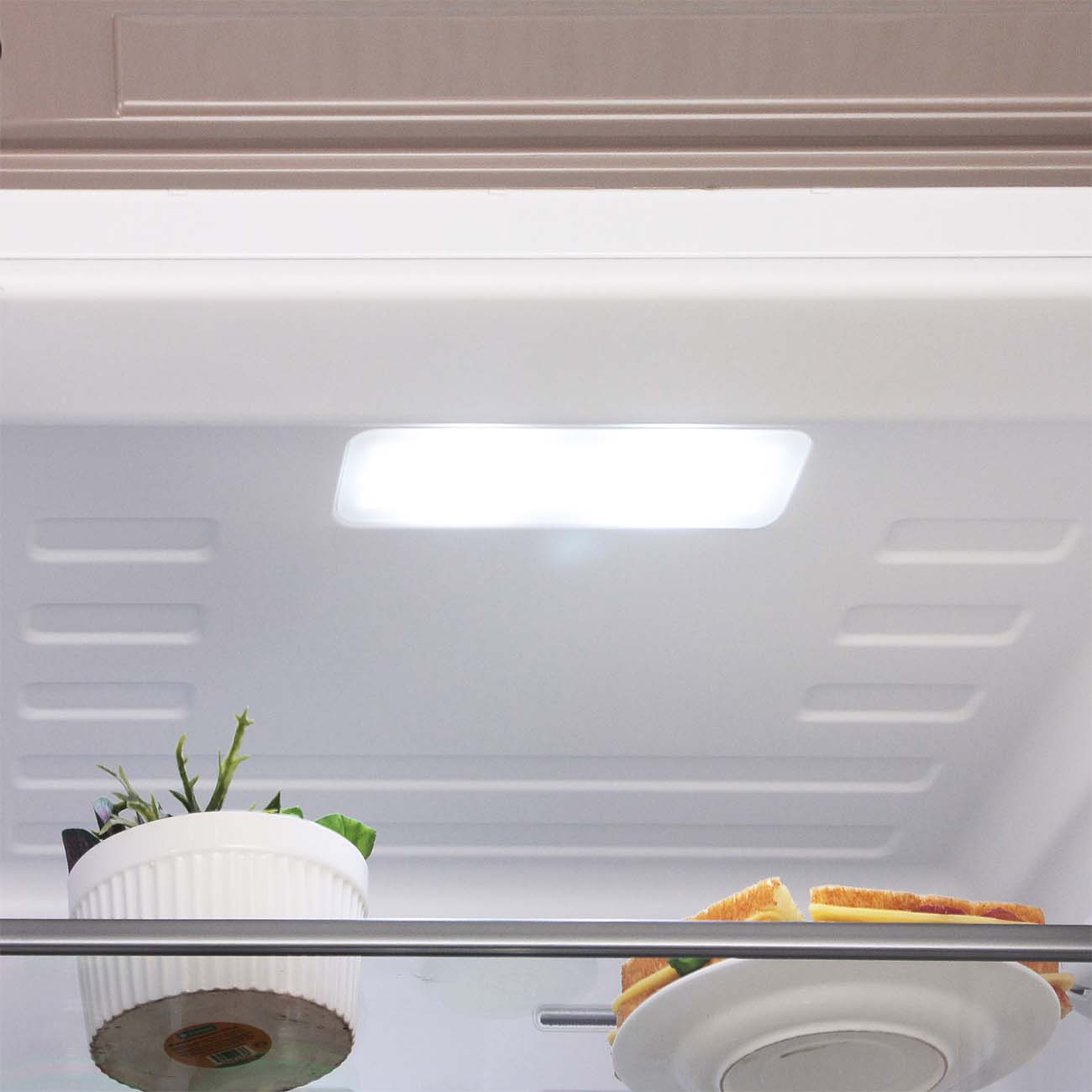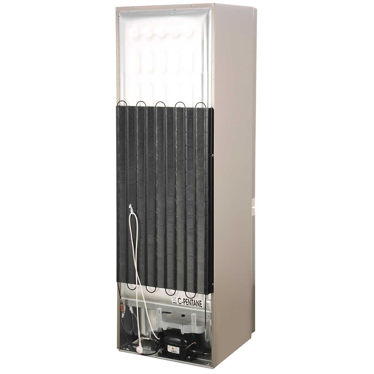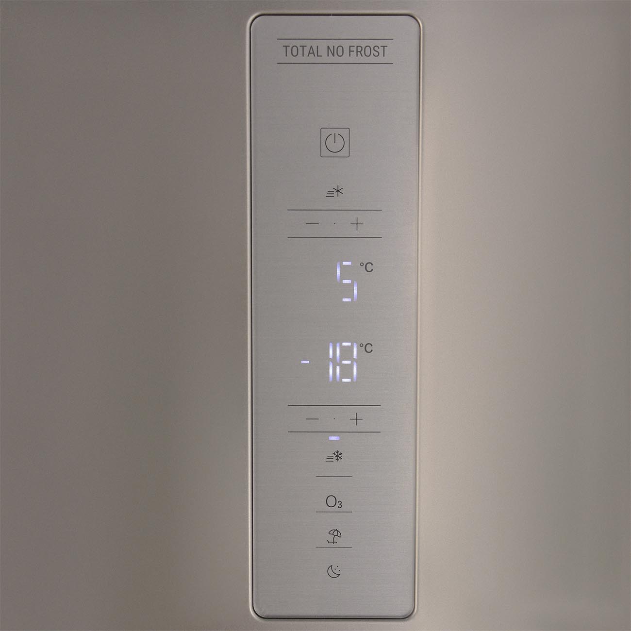 Объем холодильной камеры — 254 л, морозильной — 83 л. Устройство оснащено автоматический системой размораживания No Frost. В основном отсеке есть зона сохранения свежести влажного типа. В ней температура регулируется отдельно. Перенавешиваемая дверца сделана из металла. Скрытые ручки расположены горизонтально. В комплект включены подставка на десять яиц и формочки для льда.