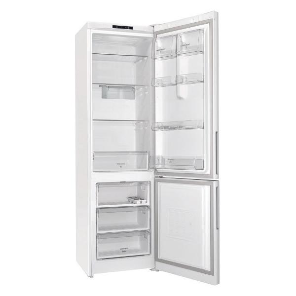 Холодильник с нижней морозильной камерой Hotpoint-Ariston HS 4200 W — устройство в корпусе белого цвета. Модель обладает общим объемом 361 л. В системе охлаждения используется хладагент R600А. В холодильной камере находятся четыре полки, регулируемые по высоте, один прозрачный ящик. Мощность замораживания составляет 4,5 кг/сутки. Устройство отличается высокой энергоэффективностью — класс А. Годовое потребление электричества равно 354 кВт*ч. Уровень шума не превышает 39 дБ.