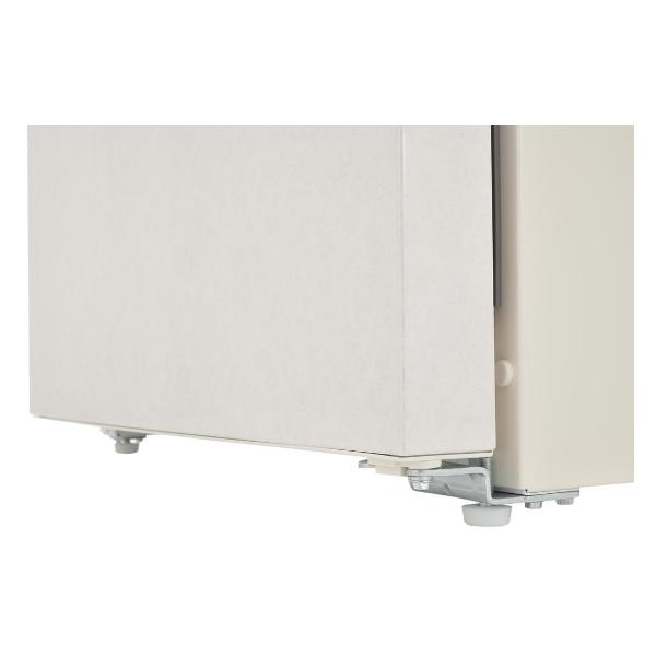 Двери открываются направо, при необходимости их можно перенавесить. Ручки расположены горизонтально. Для удобства транспортировки предусмотрены колесики. Если дверь будет долго оставаться открытой, прозвучит сигнал. В случае отключения электропитания холодильник будет поддерживать низкую внутреннюю температуру в течение 14 часов.