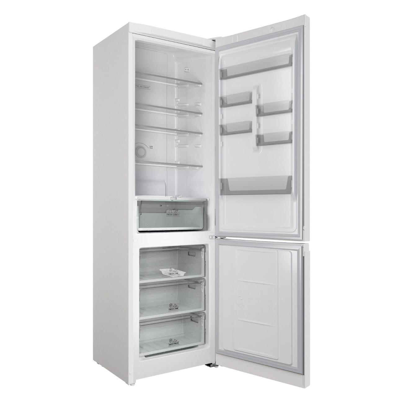 Холодильник Hotpoint HT 6200 W, белый, не требует ручного размораживания: благодаря системе No Frost воздух внутри постоянно циркулирует и не дает образовываться инею и наледи. Общий объем прибора — 323 л.
