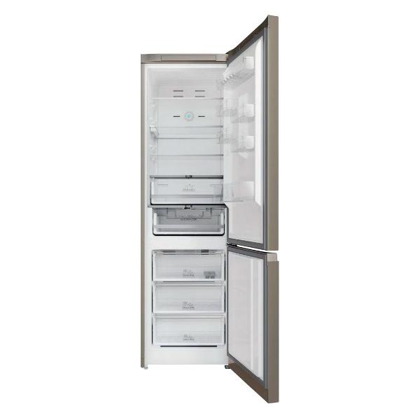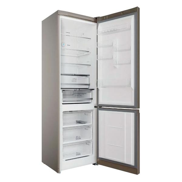 Холодильник с нижней морозильной камерой Hotpoint-Ariston HTR 8202I BZ O3 — модель, которая относится к климатическим классам SN-T. В основе работы лежит инверторный компрессор, который выдает шум до 40 дБ, что гарантирует комфортный процесс эксплуатации. Общий объем прибора равен 310 л. Холодильная камера обладает четырьмя полками из закаленного стекла, двумя выдвижными прозрачными ящиками. На дверце расположены пластиковые отделения для продуктов небольших размеров. Предусмотрена зона свежести.