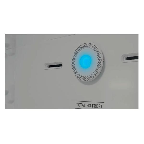 Морозильная камера оснащена тремя ящиками. Мощность замораживания составляет 9 кг в сутки. Дверцу холодильника, произведенную из металла, можно перенавешивать. Технология No Frost исключает вероятность образования наледи.
