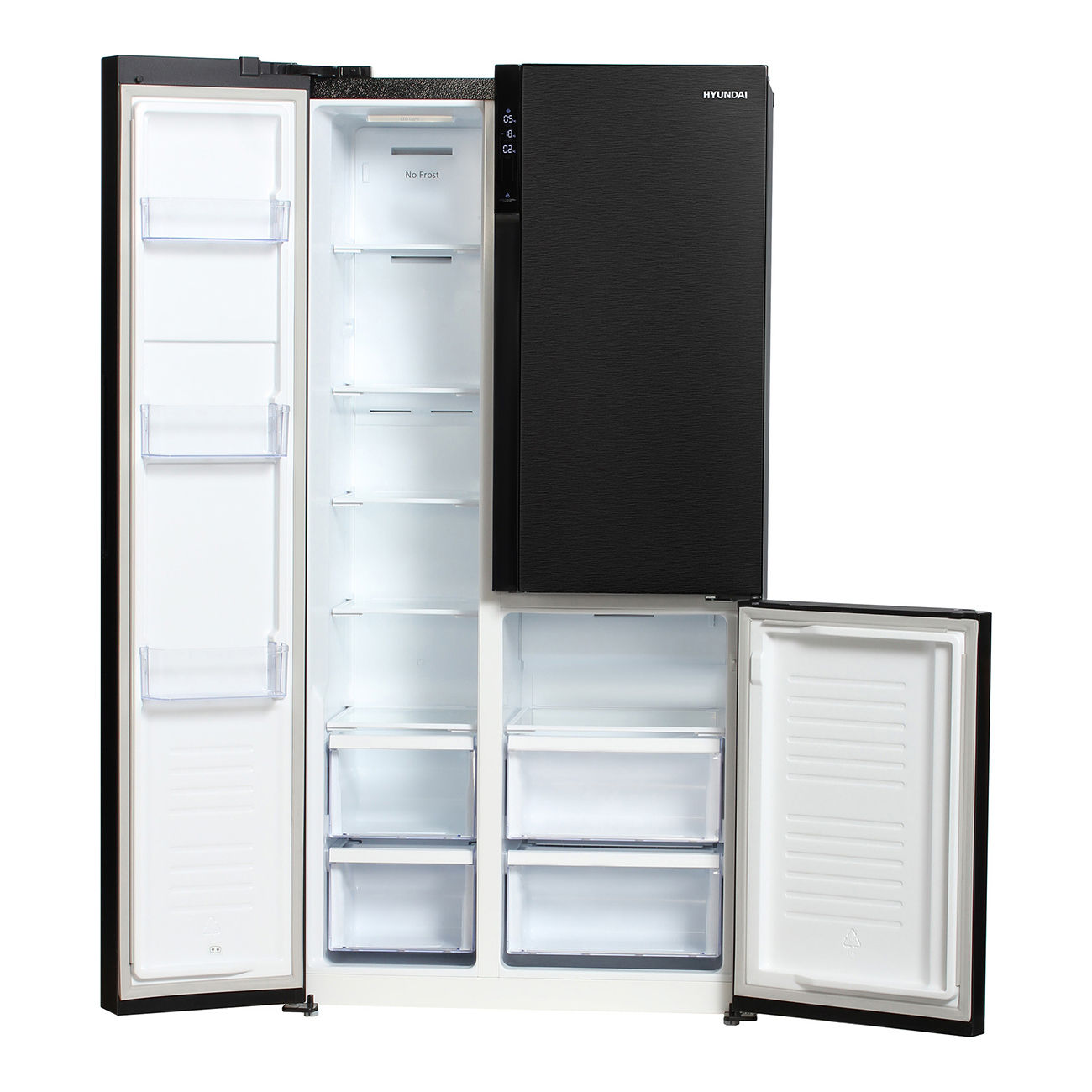 Холодильник Hyundai CS5073FV — трехкамерная модель с тремя металлическими дверцами. Она относится к типу Side by Side. Климатический класс — ST, T, SN, N. В основе работы лежит инверторный компрессор, характеризующийся низким уровнем шума, не превышающим 41 дБ. Общий объем устройства составляет 529 л. Холодильная камера на 186 л состоит из четырех стеклянных полок, контейнеров для овощей и фруктов, пластиковых балконов на двери. При открывании дверцы прибора включается светодиодное освещение.