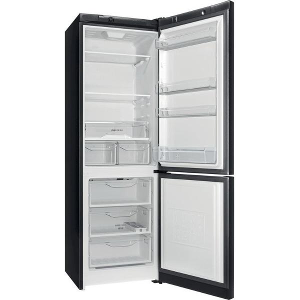 Холодильник с нижней морозильной камерой Indesit DS 4180 B черного цвета выполнен в эмалированном металлическом корпусе с перенавешиваемой дверью и транспортировочными роликами. Холодильная камера объемом 223 л поддерживает капельную систему размораживания, морозилка на 87 л — ручную. В основном отсеке установлена LED-подсветка, которая включается при открывании двери.