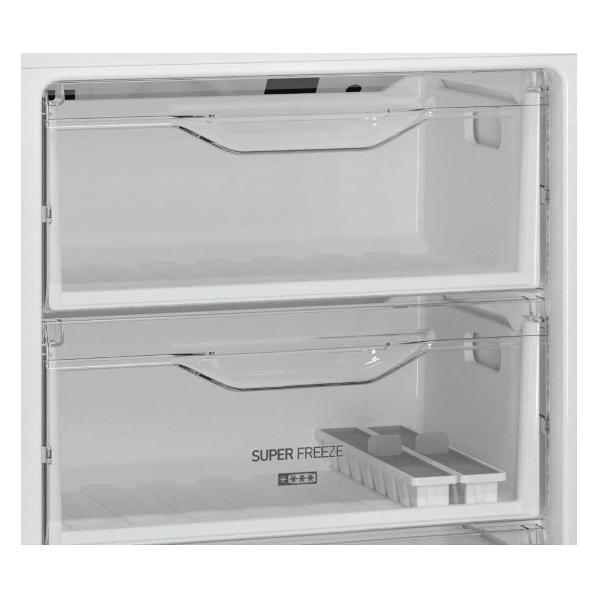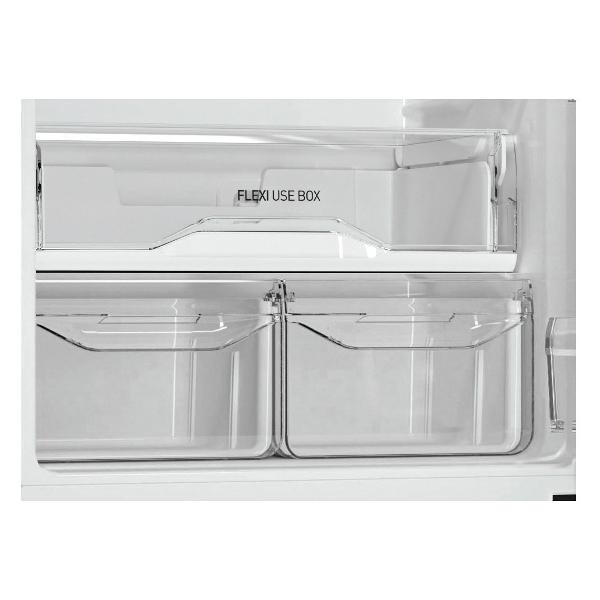 Для хранения продуктов предусмотрены четыре дверных кармана, три полки из закаленного стекла и два выдвижных контейнера. В морозилке — три ящика с прозрачными фасадами. Холодильник может замораживать продукты со скоростью 4 кг в сутки. При отключении питания холод сохраняется на протяжении 15 часов.