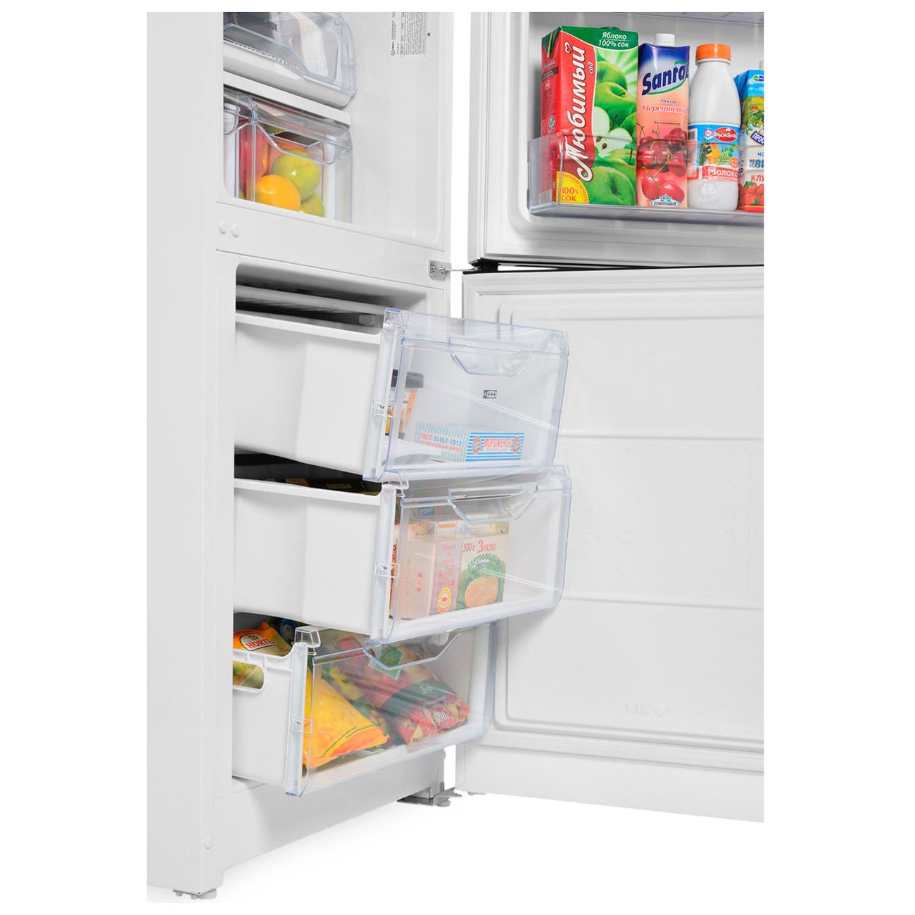 Холодильник понравился, купили для семьи из 2 взрослых и 1 ребенка, этого объема хранения для продуктов нам достаточно. Морозилка очень просторная, можно забить ее полуфабрикатами и мясом на ближайшие 3-4 недели, объем у нее 108 л., а скорость заморозки 4 кг. в сутки. В холодильнике есть 3 регулируемые по высоте полки из стекла, 2 ящика, зона свежести и 4 балкона на двери. Можно включить режим суперзаморозки или суперохлаждения.