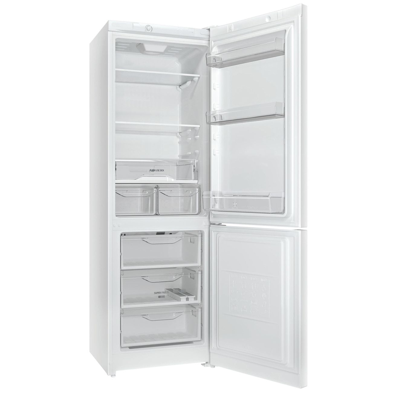 Холодильник с нижней морозильной камерой Indesit DS 4180 W — модель в корпусе белого цвета, оснащенная капельной системой размораживания, которая предотвращает появление наледи на внутренних стенках. В качестве хладагента используется безвредный для окружающей среды фреон R600A. Климатический класс модели — N-ST. Объем холодильной камеры составляет 223 л, морозильной — 87 л. При отключении питания оптимальная для хранения продуктов температура сохраняется на протяжении 18 часов. В основе работы лежит стандартный компрессор. В год холодильник потребляет около 342 кВт*ч — класс энергоэффективности А.