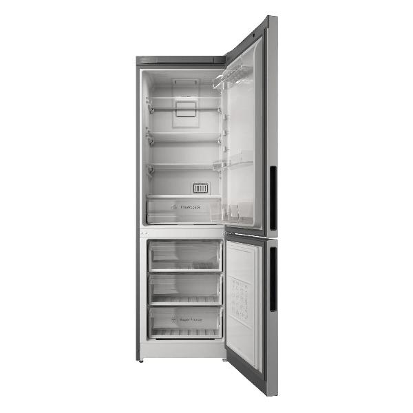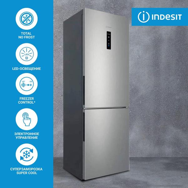 Холодильник с нижней морозильной камерой Indesit ITR 5180 X серый снабжен сенсорной панелью управления на верхней двери, которая позволяет включить режим энергосбережения, выбрать температуру для каждого отделения и активировать функции быстрой заморозки или ускоренного охлаждения. Обе камеры (холодильная объемом 220 л и морозилка — 78 л) поддерживают автоматическую систему размораживания No Frost, благодаря которой на стенках камер не появляется наледь.