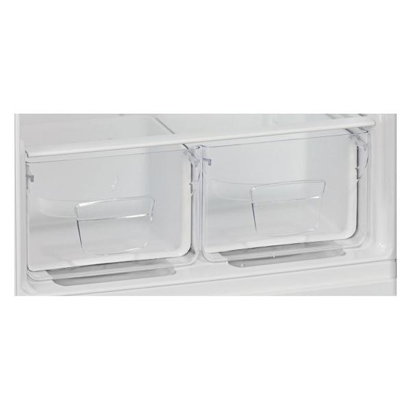 Холодильник Indesit RTM 016 снабжен двумя камерами: верхней морозилкой на 52 л и основным холодильным отсеком объемом 247 л. Корпус устройства выполнен из эмалированного металла белого цвета.