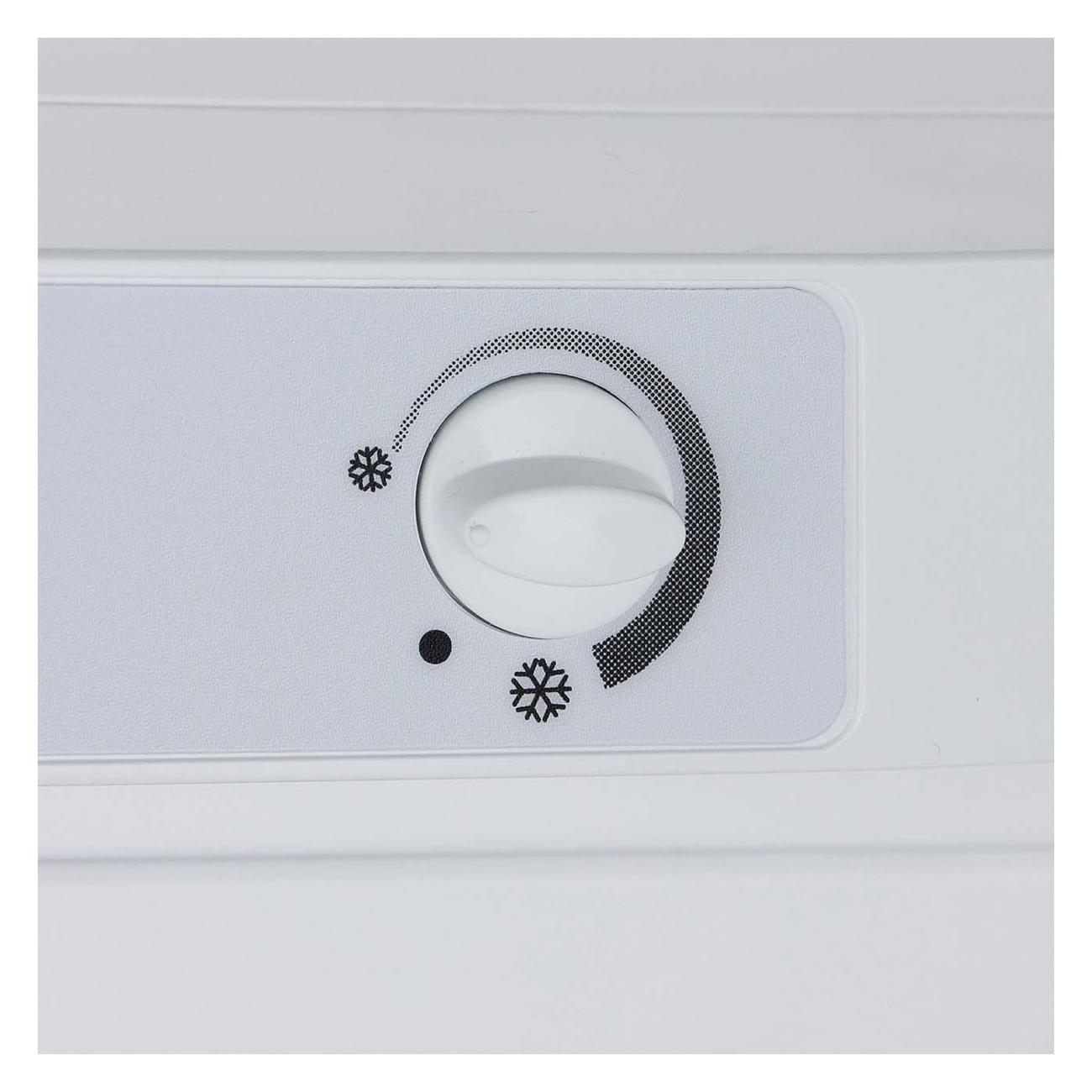 Для охлаждения используется хладагент R600A, устройство сохраняет холод на протяжении 17 часов, если питание отключится. Температуру в камерах можно выставить с помощью механического переключателя.