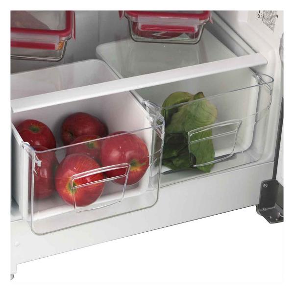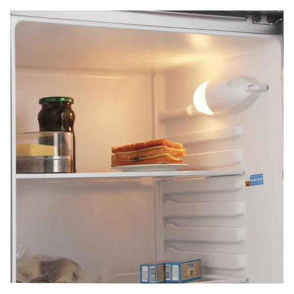 Овощи и фрукты можно класть в специальное отделение с двумя ящиками. Общий объем — 245 л. Класс энергоэффективности A обеспечивает годовой расход электричества примерно 317 кВт*ч. При отключении питания низкая температура сохраняется в течение 17 часов. Система управления — механическая, освещение — с помощью лампы накаливания. Размеры — 167х60х63 см.