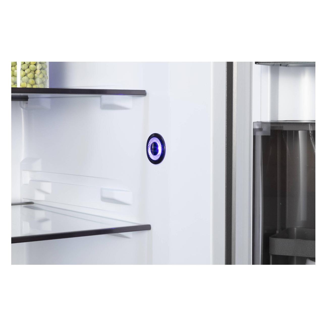 Управление осуществляется при помощи сенсорной панели на корпусе и цифрового дисплея, на котором отображаются данные о текущей температуре в холодильной и морозильной камерах. Устройство оснащено металлическими дверями с внутренними вертикальными ручками. За безопасную работу отвечают функция самодиагностики неисправностей, сохранения температуры при отключении питания в течение 9 ч, звуковые сигналы при открытой двери и отключения электропитания.