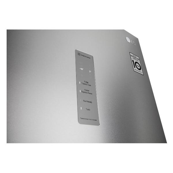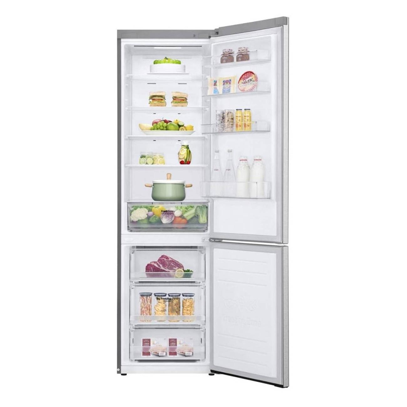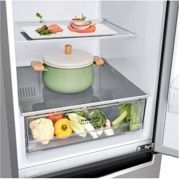 Холодильник с нижней морозильной камерой LG GA-B 509 MAWL размораживается автоматически по технологии No Frost, благодаря которой минимизируется возникновение наледи на внутренних стенках. Холодильная камера объемом 292 л позволяет хранить оптимальное количество блюд, ингредиентов на неделю вперед. Полки регулируются по высоте, поэтому удобно оптимизировать пространство для высоких емкостей и габаритных упаковок. Для зелени, фруктов, ягод предусмотрена зона свежести.