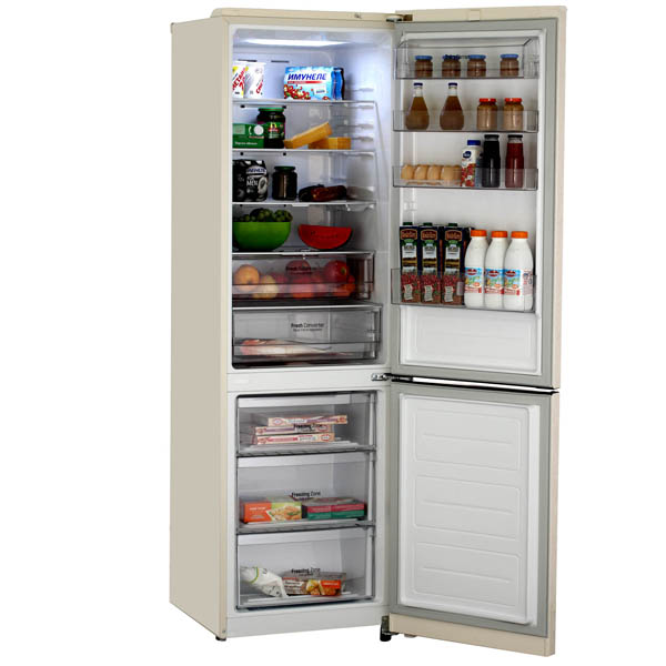 Представьте что вы шли с работы вечерком через магазин домой , купили мороженное в коробочке пластиковой... купили продукты и овощи и вернулись домой. Первым делом открыли этот красивейший холодильник , его нижнюю дверь чтоб быстрее положить мороженное , чтоб оно не растаяло и у вас это не получится. Щель маленькая, ящик морозилки выдвигается на половинку, а верхняя дверь в закрытом положении своим выпуклым дизайном еще сильнее препятствует положить что то. В итоге открываем верхнюю дверь ради одного мороженного. Ладно дальше, наварили допустим кострюлю борща, думаю 90% людей ставят потом эту кострюлю на ночь в холодильник, чтоб не прокисло в тепле. В холодильнике есть складная полка чтоб уместить что то большое и не извлекать каждый раз...но на том месте где будет стоять кастрюля, на полке сделали кнопку для регулировки , которая мешается, она во первых не регулирует ниче, во вторых царапается кастрюлей, в третьих кастрюля не ровно стоит. Вообще супер удобно, а не ставить борщ в холодильник - прокиснет! В комплектации железная полочка для бутылок находится прямо между верхними полками, это конечно тоже хорошо что есть куда бутылки складывать, но тогда под этими бутылками на стеклянную полку ниче не поместить. В итоге имеем красивый холодильник в который можно положить несколько бутылок , и одну большую кастрюлю, и еще что то на самую верхнюю полку. При этом масса дешевого пластика, даже в дисплее уже нет сенсорного экрана. Какая то пленка , но зато есть вай фай , и им не вариант пользоваться, а хотя былоб не плохо, в трудные времена через холодильник в инет заходить, когда на счету нет... Кстати ужасно хвалят линейный компрессор а++. Да цифры впечатляют, на практике не много шумноват, не тарахтит, но как будто булькает что то иногда. Экономия за электроэнергию исчезает, как только вы начнете что то ложить в морозилку и при этом лишний раз открывая холодильник чтоб просто влезло. Сам моторный отсек не закрыт. Прекрасно видно компрессор лджи, что не плохо на с