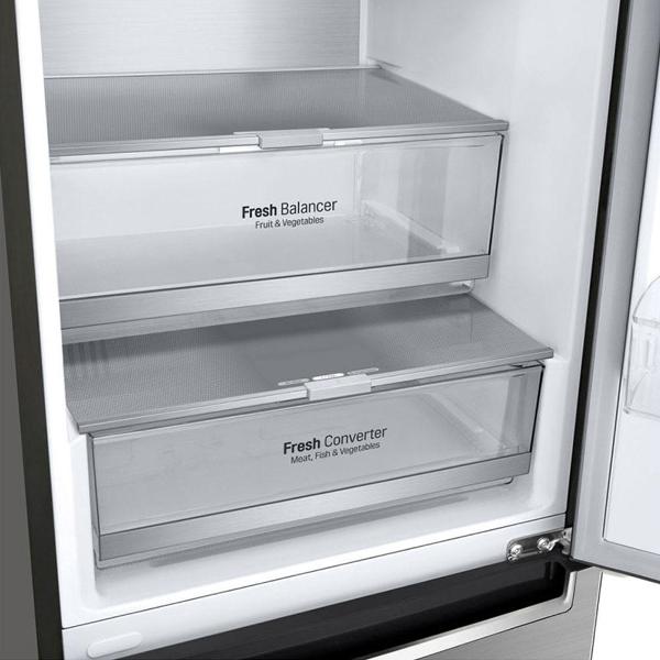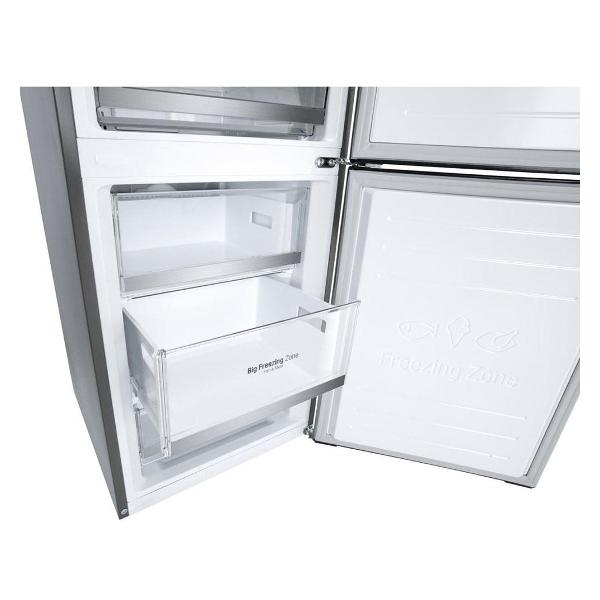 Холодильник с нижней морозильной камерой LG GC-B459SMUM, серебристый оснащен инверторным компрессором, который отличается высокой надежностью и экономичным потреблением электроэнергии класса А++ (262 кВт*ч в год). Уровень шума при работе не превышает 36 дБ. Система охлаждения заправлена современным озонобезопасным хладагентом R600A.