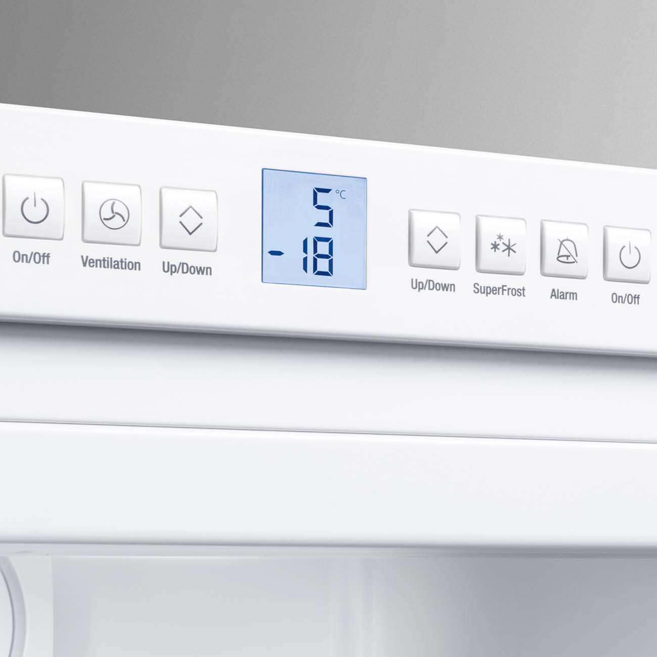 Температуру в обеих камерах отображает дисплей MagicEye. В случае её непредусмотренного повышения и при слишком долго открытой дверце звучит сигнал. Режим SuperFrost будет полезен при единовременной загрузке большого количества свежих припасов. Он автоматически отключится через 65 часов, если вы не сделаете этого раньше вручную.
