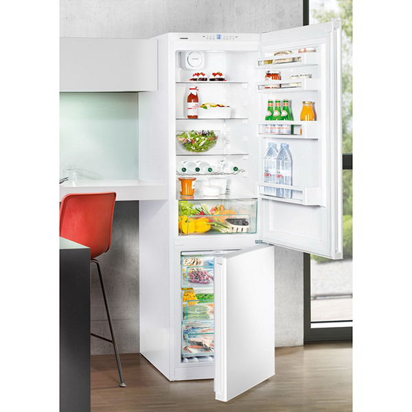 Холодильник с нижней морозильной камерой Liebherr CNP 4813-23, выполненный в белом цвете, оснащен одним инверторным компрессором. Он расходует 167 кВт*ч в год, что соответствует классу энергопотребления А++, и издает шум на уровне 40 дБ.