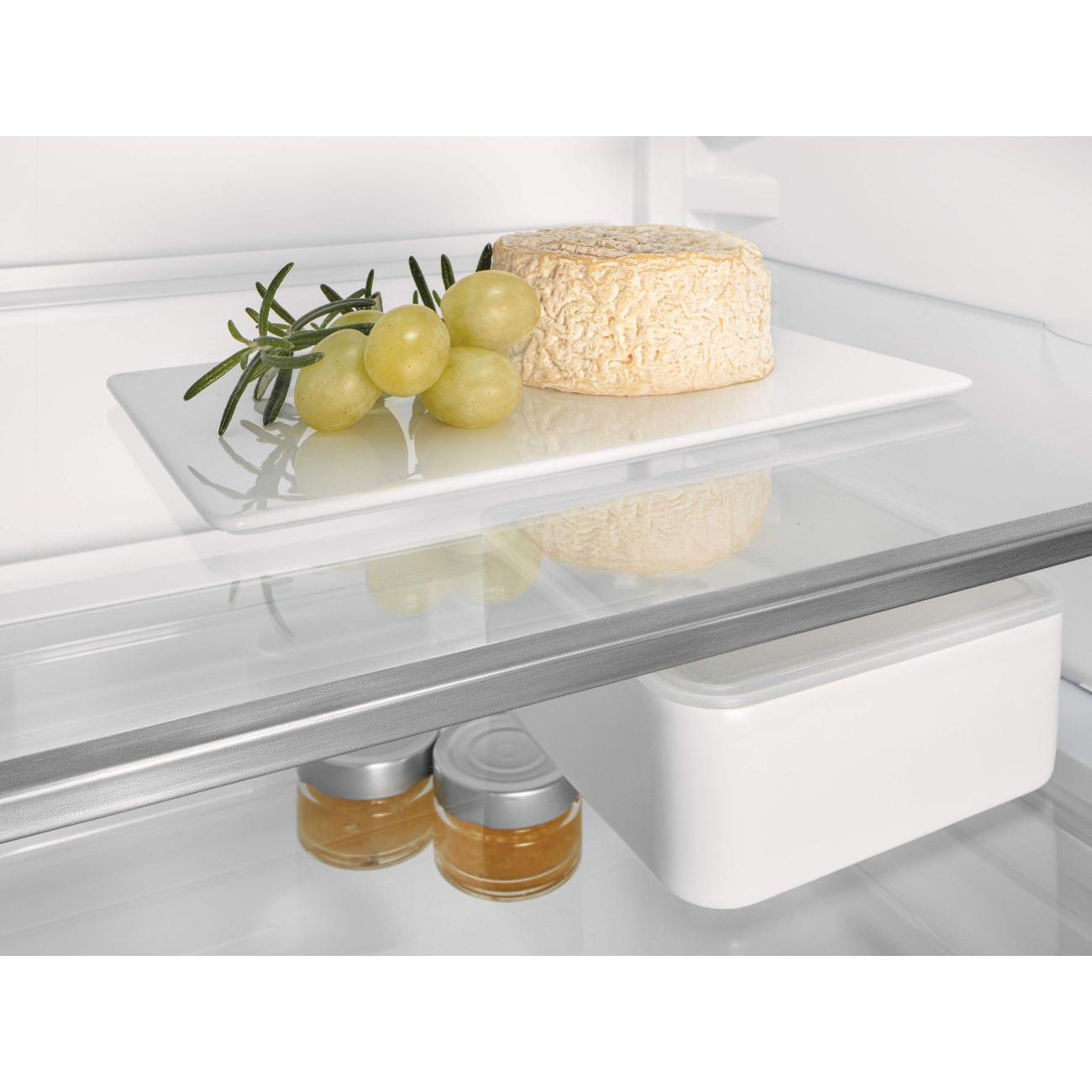 Внутреннее оснащение состоит из пяти стеклянных полок, из которых четыре регулируются по высоте, четырех дверных карманов и подвеса для бутылок. Подсветка светодиодная — отличается высокой яркостью и не влияет на внутренний микроклимат. Оборудование морозильной камеры представлено тремя выдвижными ящиками. В сутки можно заморозить до 16 кг свежих продуктов, при отключении питания припасы будут сохраняться от таяния в течение 24 часов.