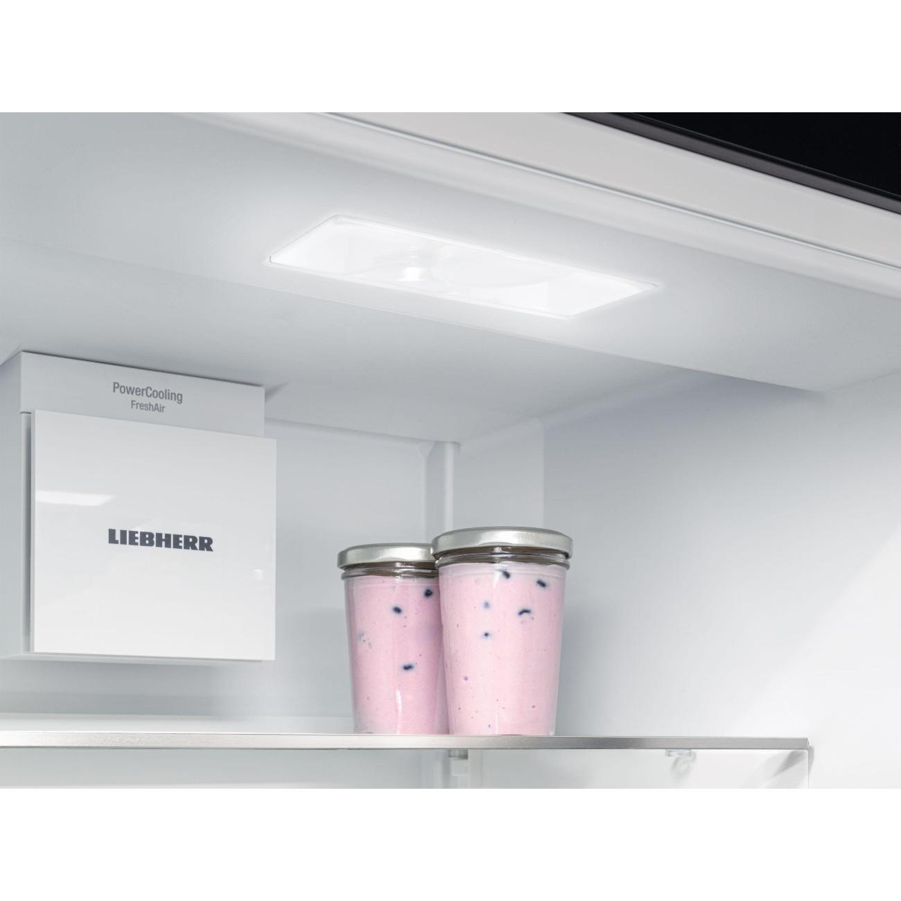 В основе системы охлаждения — стандартный компрессор, энергопотребление соответствует классу А и составляет 405 кВт*ч в год. Уровень шума не превышает 39 дБ. Габариты Liebherr CNsff 5703-22 001: 201,5х59,7х67,5 см, вес — 76 кг.