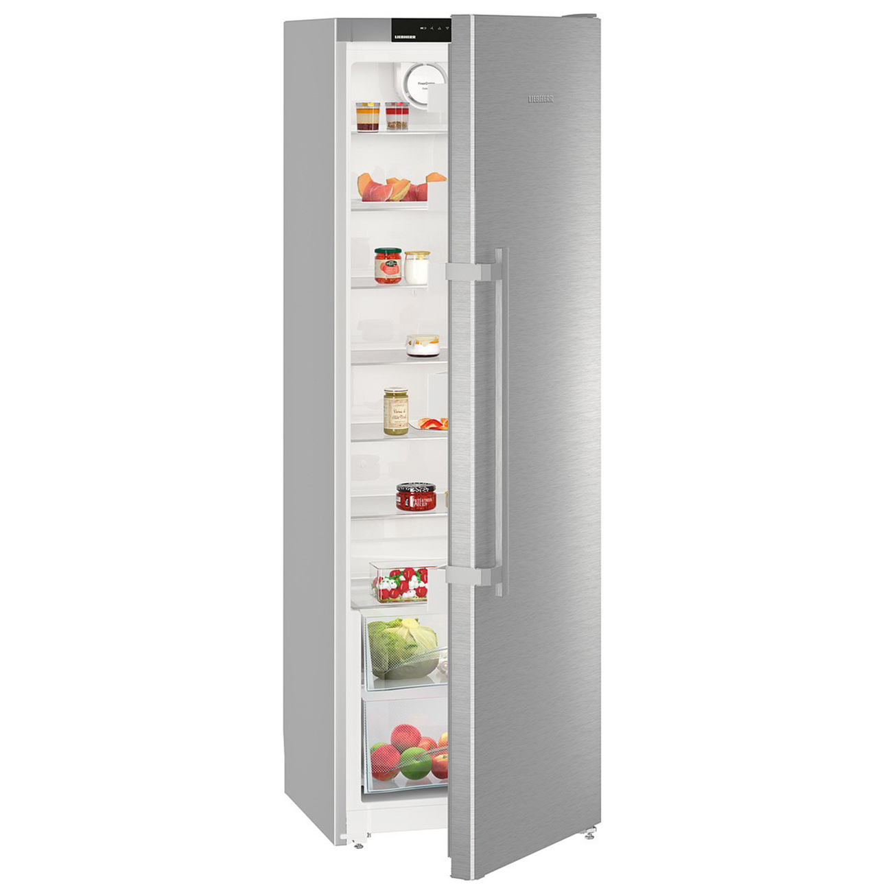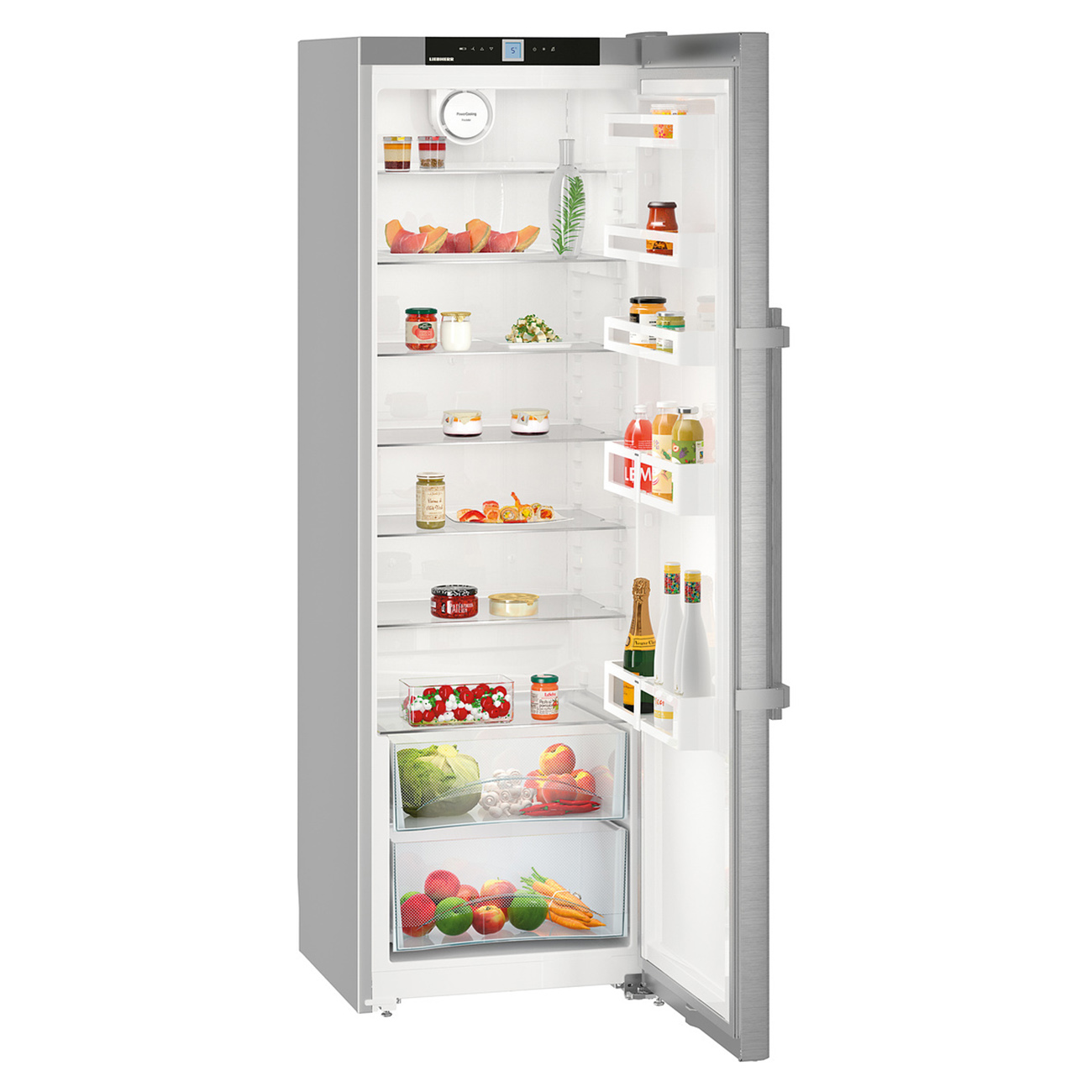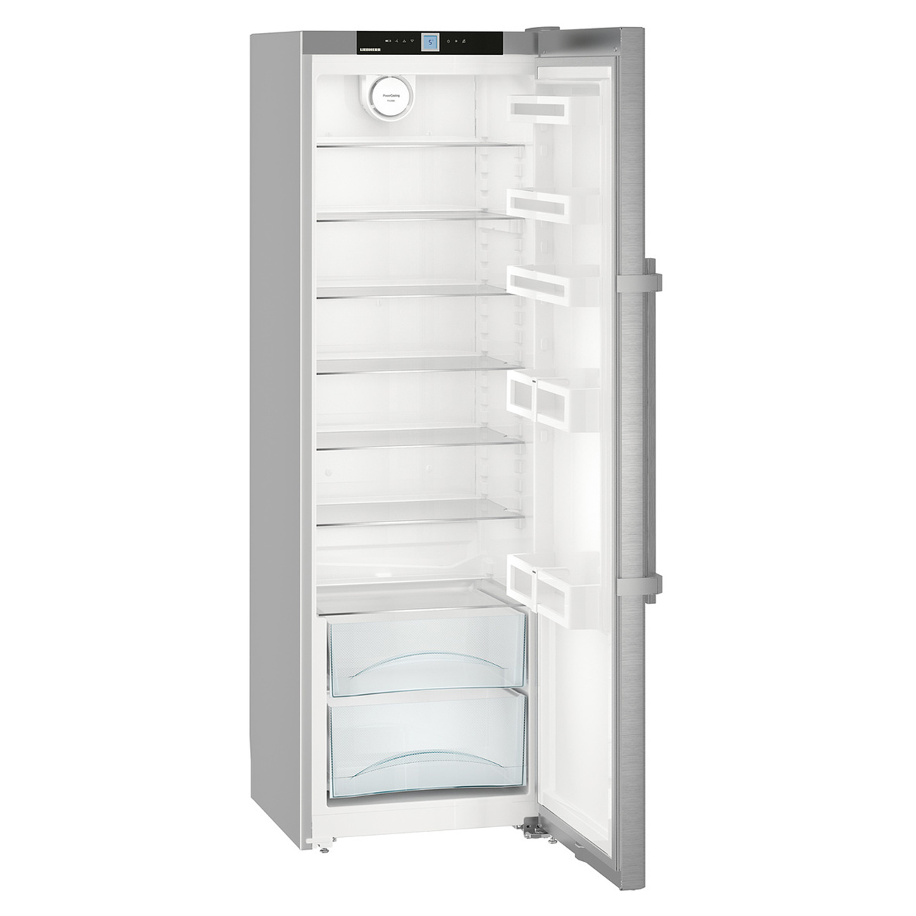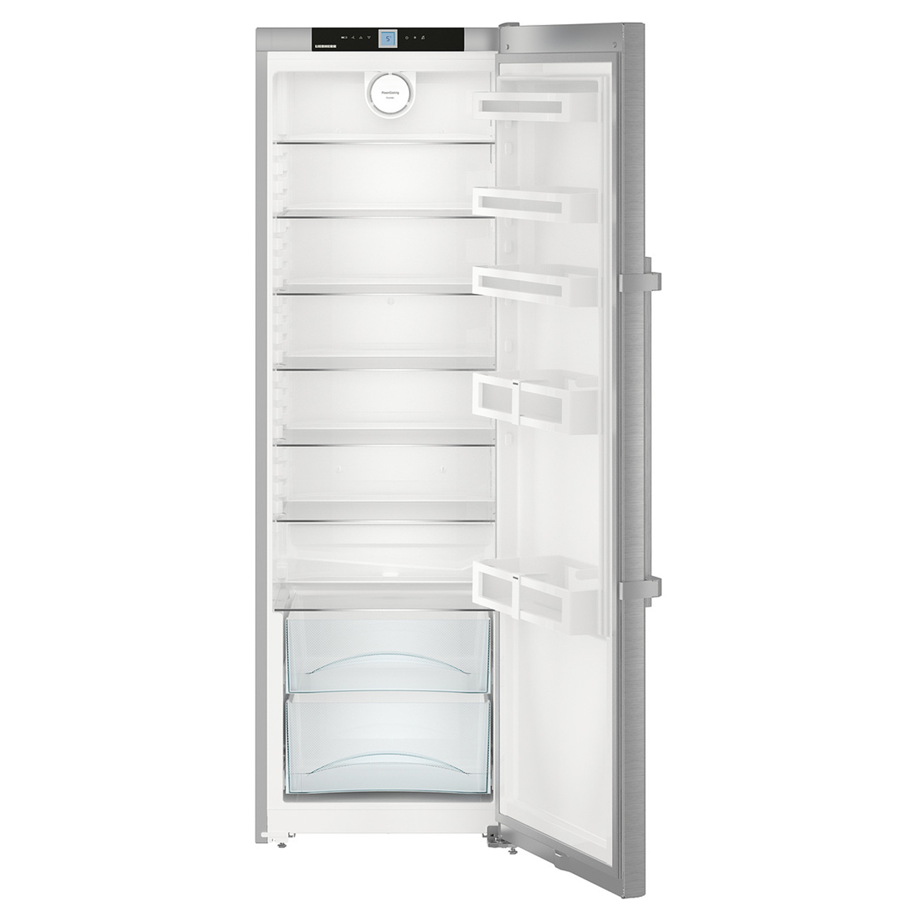 Холодильник Liebherr SKef вмещает до 391 л. В его камере расположены семь основных и пять дверных полок, зона свежести с двумя выкатными контейнерами, в которых созданы оптимальные условия для хранения овощей и фруктов. Функция SuperCool обеспечивает поддержание температуры на уровне +2 °С в течение 12 часов для быстрого охлаждения продуктов, что сохраняет их полезные свойства.