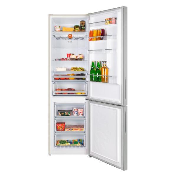 Вместительный холодильник, продукты теперь размещаются свободно. Морозилка снизу это удобно, не нужно постоянно наклоняться. Работает тихо, практически не слышно. Полки стеклянные, прочные, легко моются. В целом, покупкой довольна.