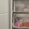 Оснащение холодильной камеры включает три стеклянные полки и три дверных кармана. Подсветка светодиодная, расположена сверху. В морозильном отделении — три выдвижных ящика. В сутки можно заморозить до 14 кг продуктов. При отключении электропитания содержимое не начнет таять в течение 15 часов.