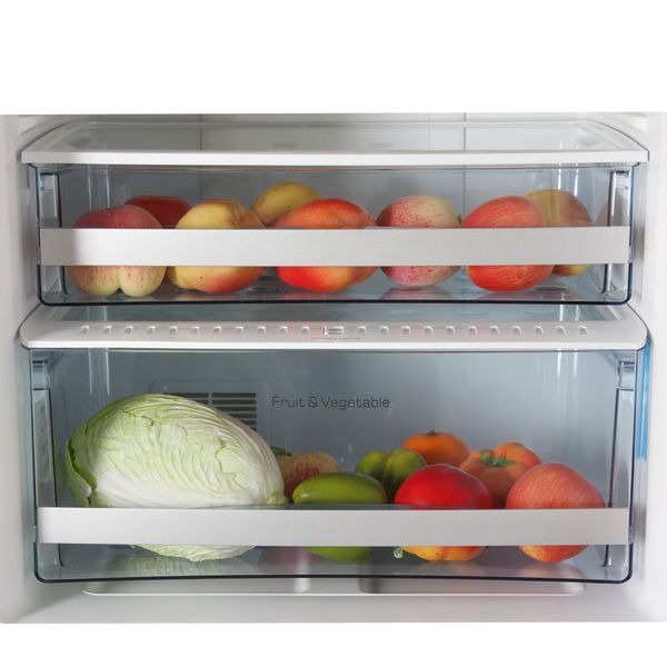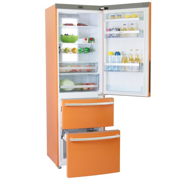 Холодильник нам привезли перед Новым годом. Пользуемся 2 недели. Впечатления - только положительные: очень красивый цвет (ежедневно получаю позитивные эмоции при выходе на кухню), матовый, т.е. никаких отпечатков рук. Ручки на ящиках морозильных камер - крепкие, основательные (металл) и одновременно аккуратные, округлые - не сильно выпирающие. У холодильника вся поверхность (бока, сверху и передняя панель) оклеены защитной пленкой (очень аккуратно) - мы сняли ее только с передней дверцы холодильной камеры - остальное оставили пока, дольше будет оставаться как новый, пленку практически не видно. Ножки регулируются по высоте - мы ничего не делали с ними - встал хорошо сразу. Внутри все удобно - ящик для овощей - огромный!!! Ящик повыше - с зоной свежести - поменьше, но тоже большой, влезают 3 курицы рядком. Полки размещены удобно - на нижнюю ставлю 6-ти!!! литровую кастрюлю и еще остается место и в высоту и в ширину (на 3-х литровую кастрюльку). Боковые полки тоже отличные - есть внизу совсем маленькая - поставить лекарства к примеру или рецепты блюд положить, чтобы были под рукой. На вторую сверху полку на дверце влезает 3 десятка яиц. Если еще складной держатель для бутылок, прикреплен снизу одной из полок - мы его даже не сразу нашли. Морозильное отделение - отдельная песня. Нижнее огромное - влезет и арбуз. Оба удобно выдвигаются без всяких усилий - тянешь за ручку и перед тобой все отделение, как на ладони, не надо сгибаться в три погибели, как перед обычным холодильником. Помимо самого отделения, разделенного на две части сверху в нижнем уложен на направляющие еще неглубокий лоток - в него помещается 8 пачек наггетсов. В верхнем морозильнике - тоже такой лоток - но поменьше - там формочка для льда и еще что-то можно положить. Оба морозильных отделения - с доводчиками. Не скажу, что с большого расстояния - прикрываешь их и они дальше сами присасываются. Холодильник не гудит. Загрузили его СРАЗУ как привезли, т.к. прежний сломался, будучи забитый полностью прод
