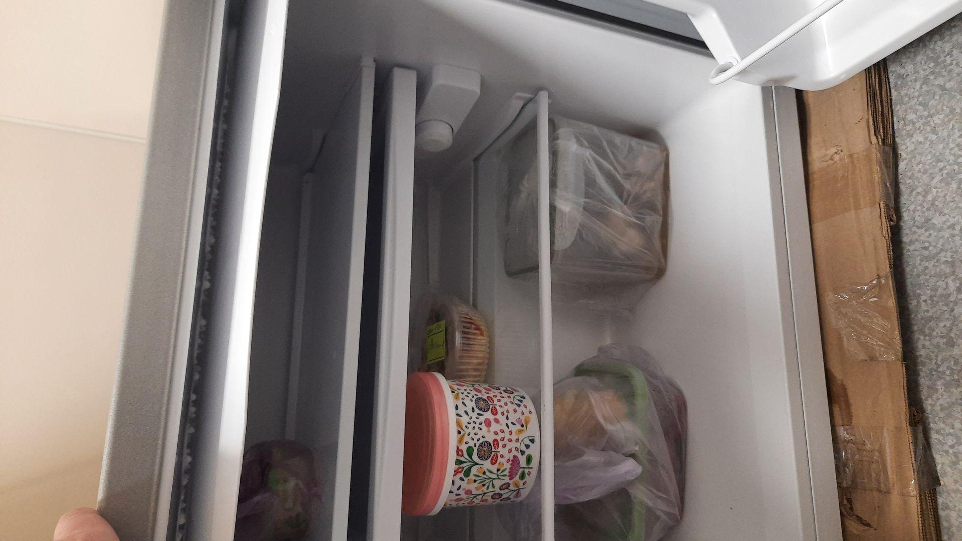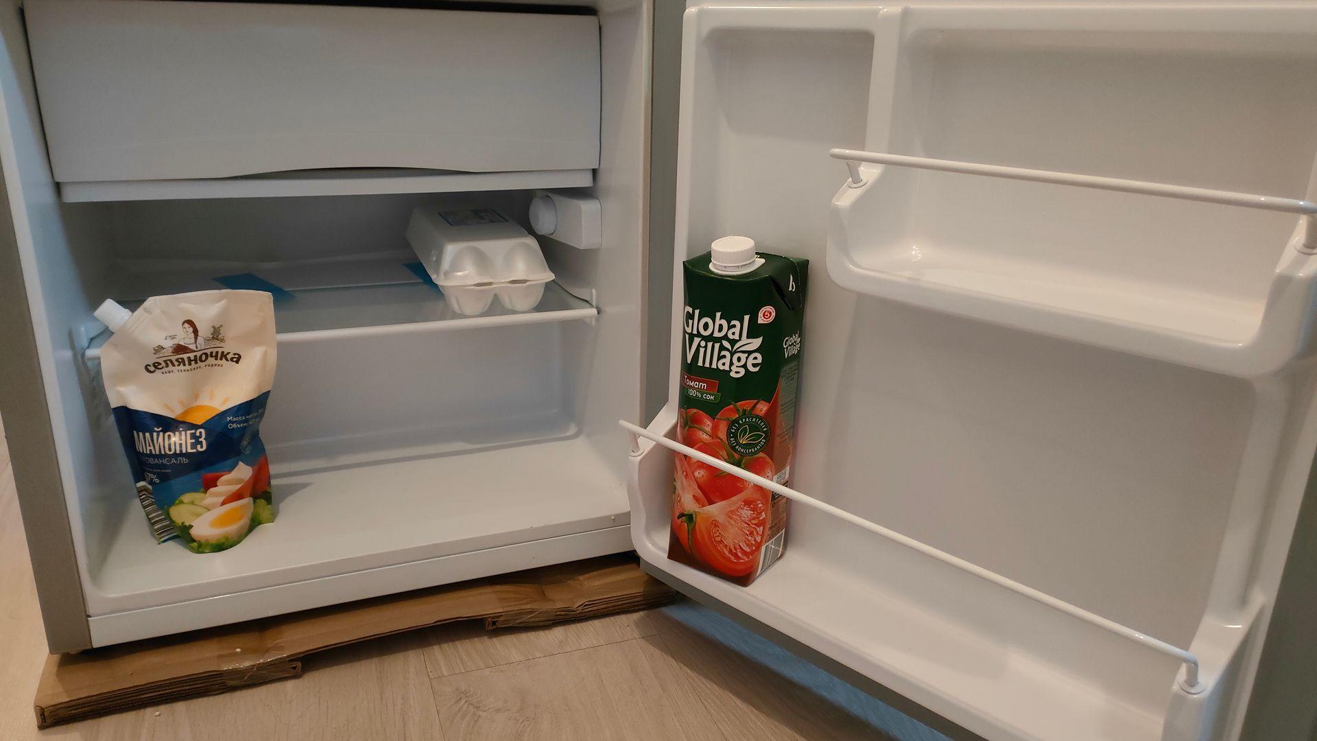 Купили компактный и недорогой холодильник в преддверии лета. Не щанимает много места, 2 полочки, одна глубокая, маленькая морозильная камера, на верх открывается дверка. В двери холодильника полки для бутылок разного размера, помещается даже на 1.5 литр.минералка. переключатель температуры в виде "крутилки" . Холодит хорошо, но морозилку не тестили.
