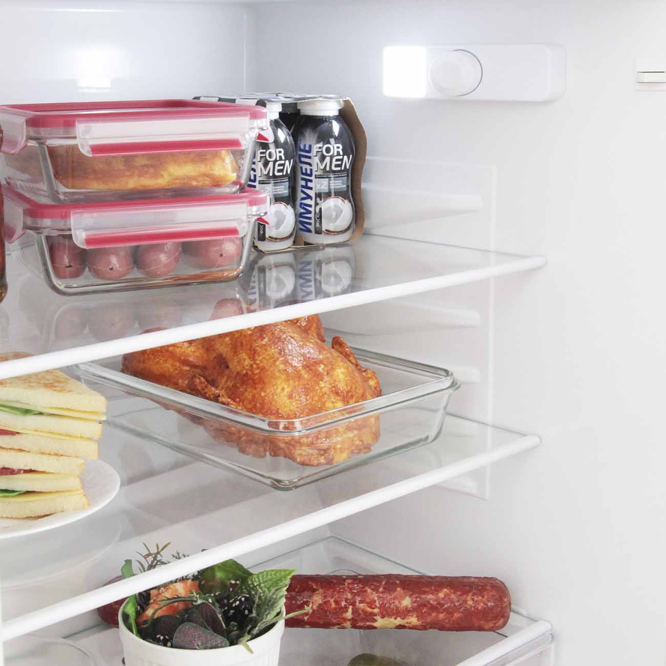Холодильник построен на основе тихого, надёжного и экономичного компрессора, который потребляет на 20% меньше электроэнергии по сравнению с моделями класса «А».