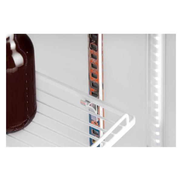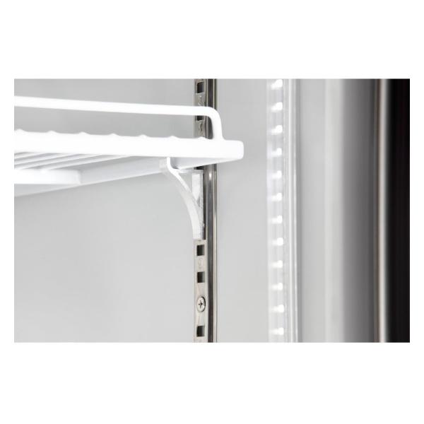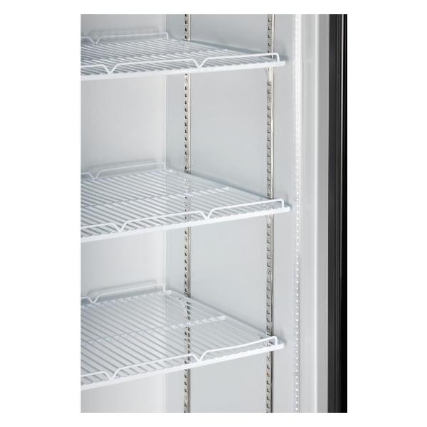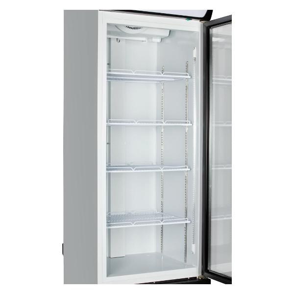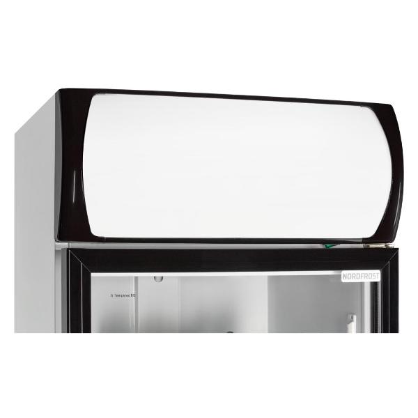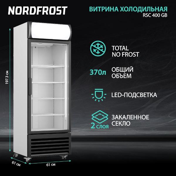 Однодверный холодильник Nordfrost RSC 400 GB — модель витринного типа с прозрачной стеклянной дверью, обладающая общим объемом 370 л, из которых полезный — 335 л. Климатический класс модели — SN, N. Уровень шума не превышает 60 дБ. Для разморозки используется автоматическая система No Frost, которая позволяет избежать появления слоя инея и наледи на внутренних стенках. В камере установлены четыре полки в виде металлических решеток. Тип освещения — светодиодное (LED).