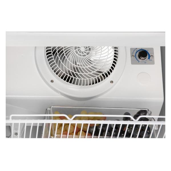 Предусмотрено внутреннее антибактериальное покрытие. Дверца открывается направо. Встроенный вентилятор способствует равномерному распределению температуры. Тип компрессора — стандартный. Годовое энергопотребление составляет 268 кВт*ч. Управление — механическое. Размеры устройства составляют 197,3х61х61 см, вес — 72 кг.