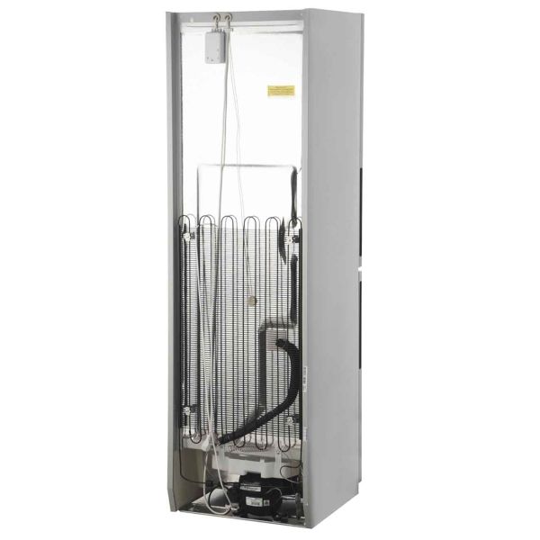 Холодильник размораживается автоматически по технологии No Frost. Уровень охлаждения выбирается механическим поворотным регулятором, расположенным внутри, в верхней части корпуса. Направление открывания дверей можно изменить, чтобы с удобством пользоваться прибором при любой планировке помещения.